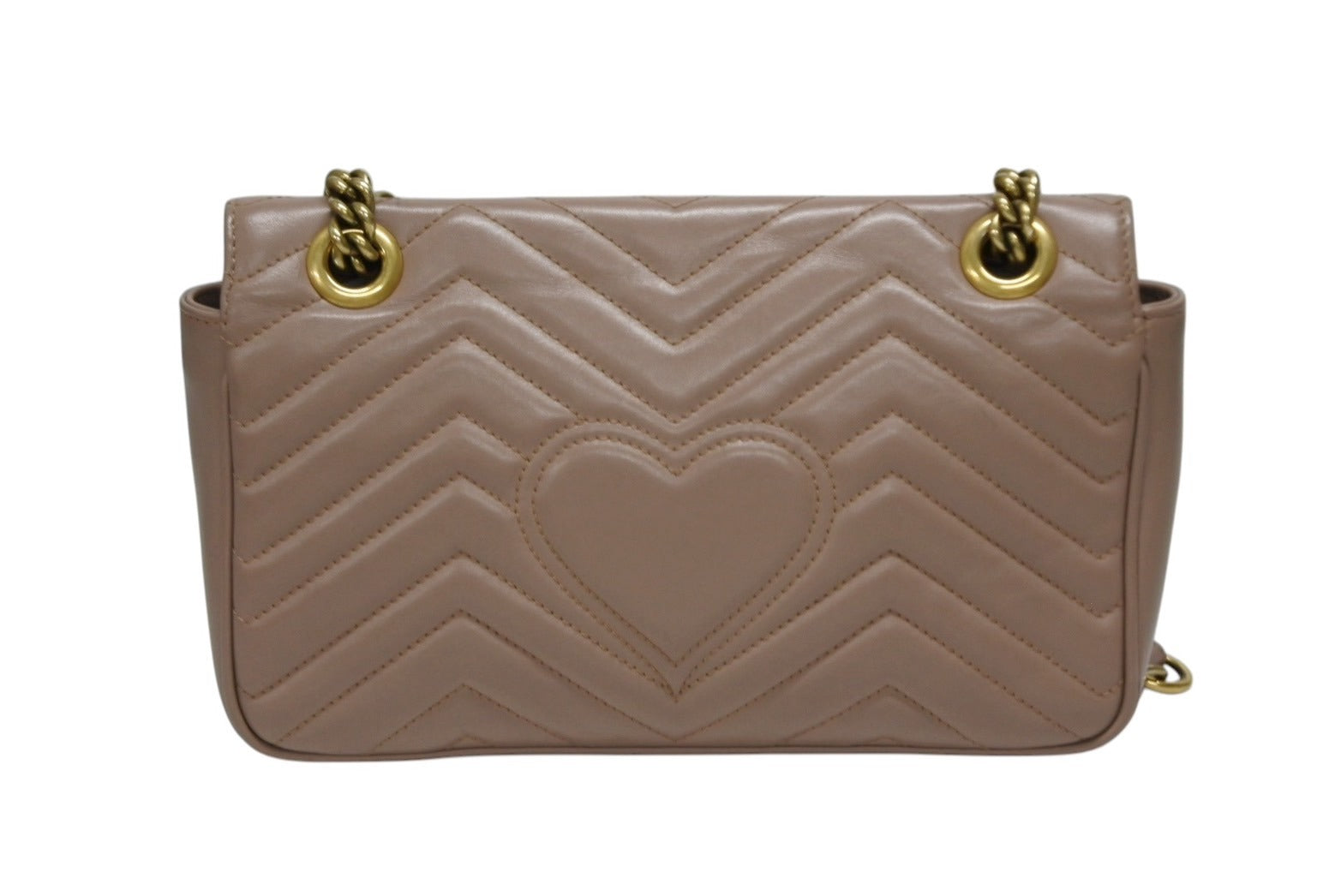 ヴィンテージ感のある上質なキルティングレザーと、アイコニックなダブルGのハードウェアを特徴とする、GGマーモントシリーズのバッグです。