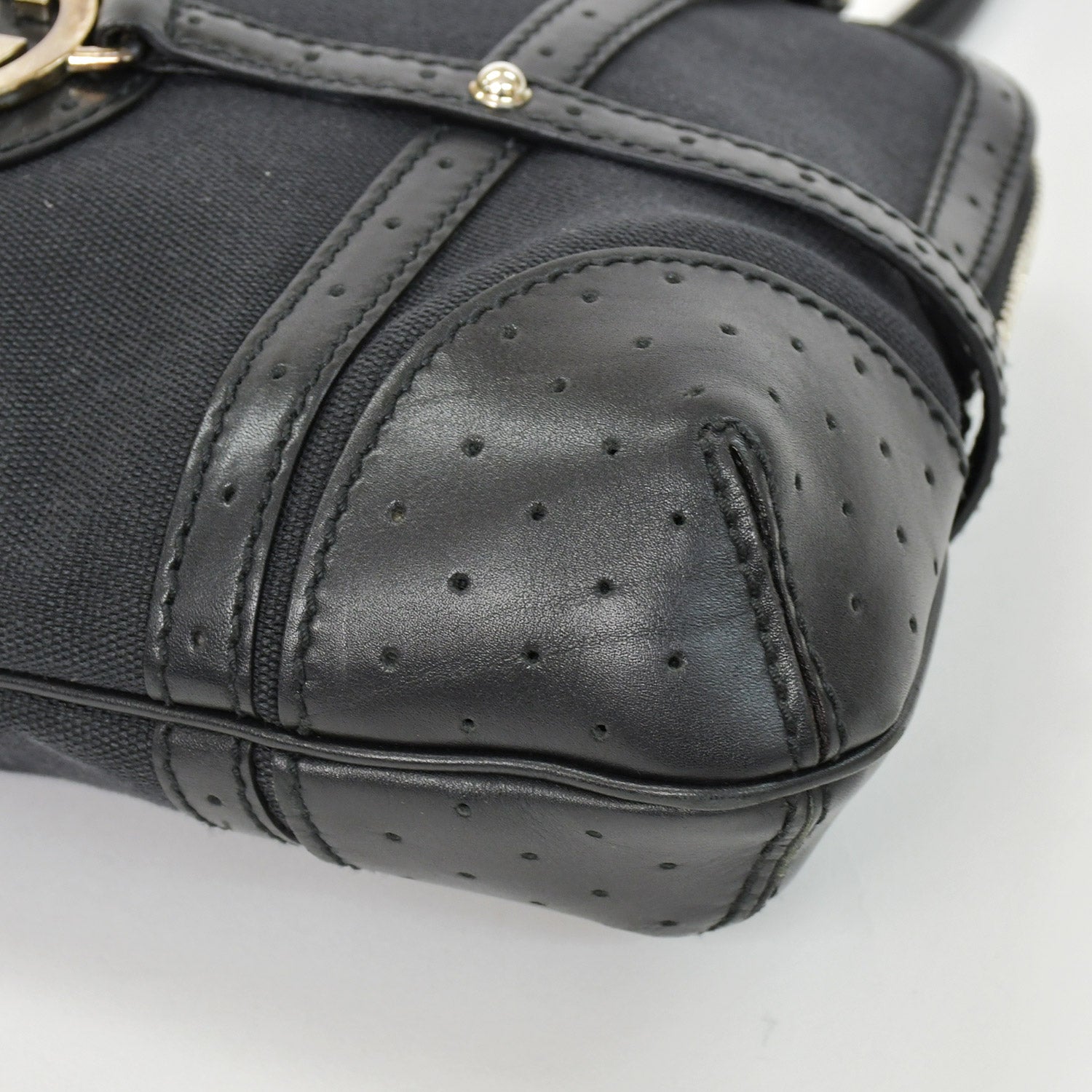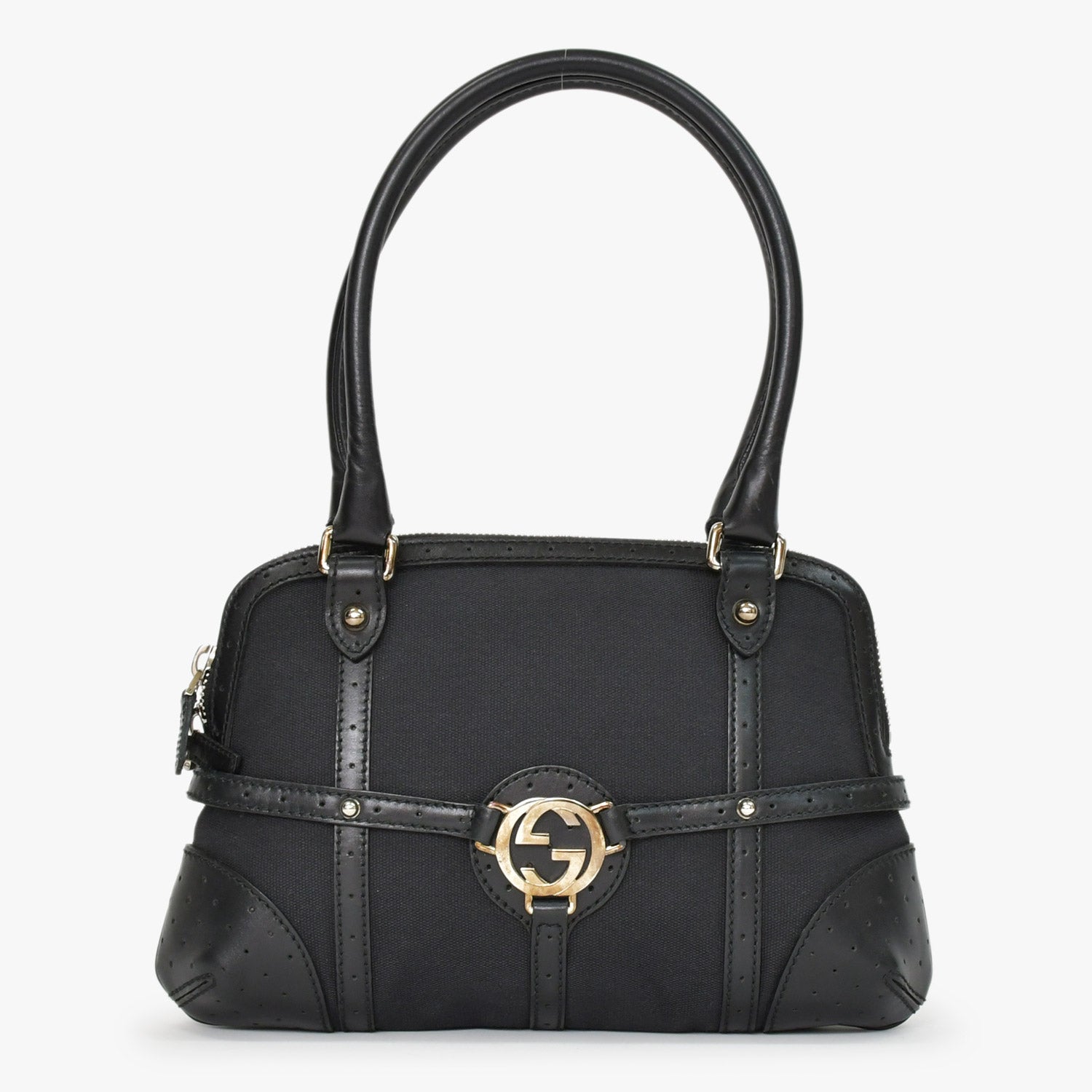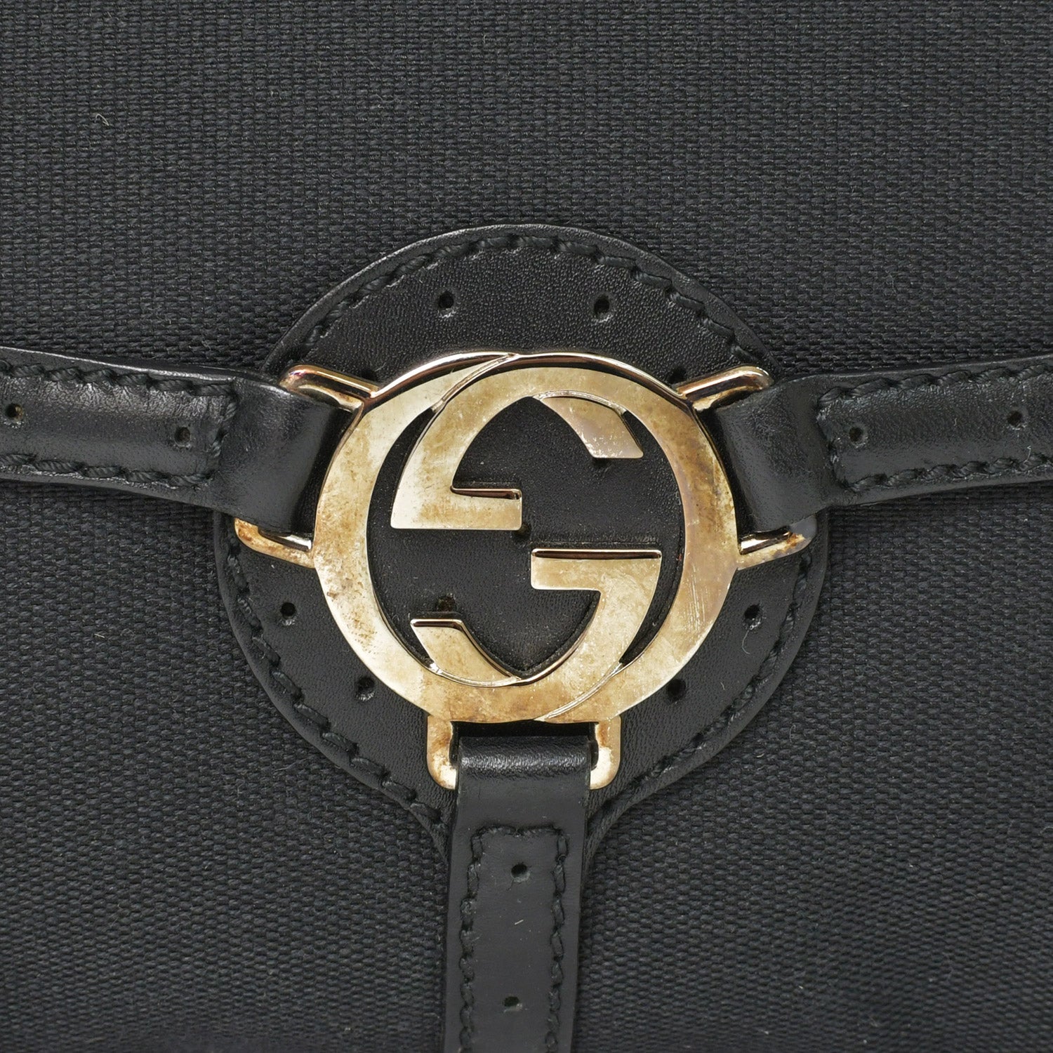 極美品 GUCCI グッチ インターロッキング ハンドバック 114882 001998 キャンバス レザー ブラック シルバー金具 中古 4b010069