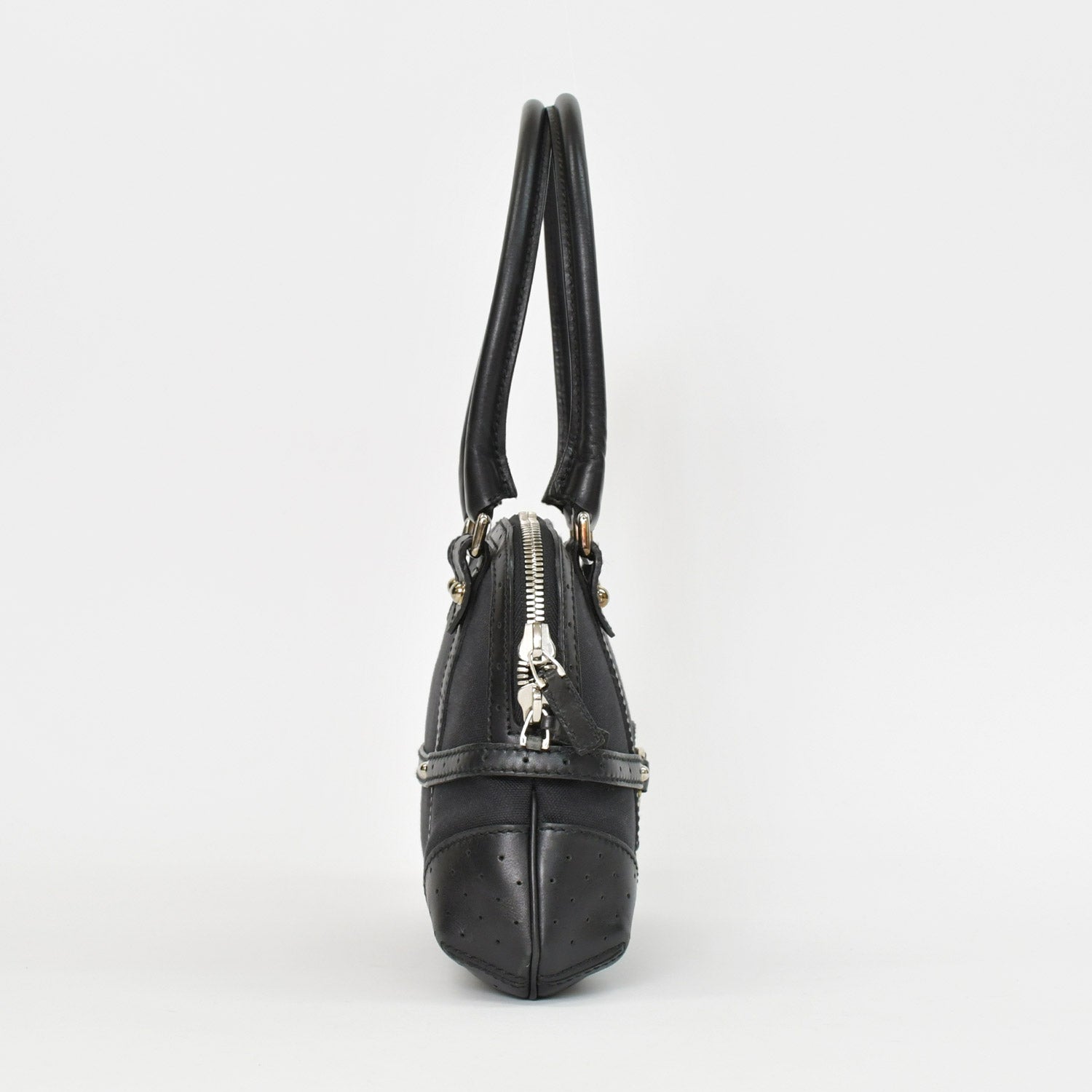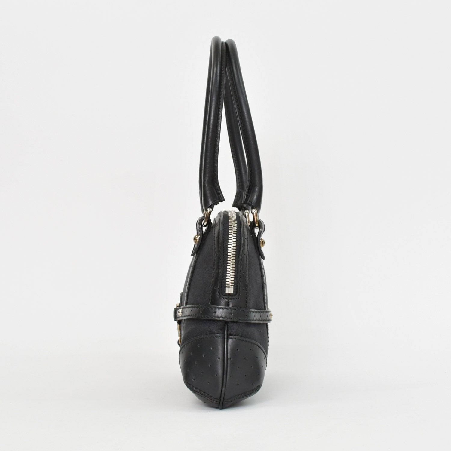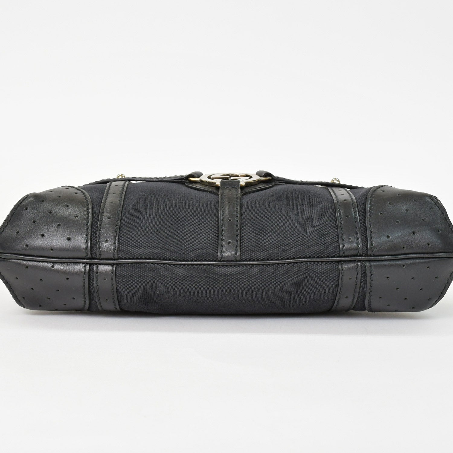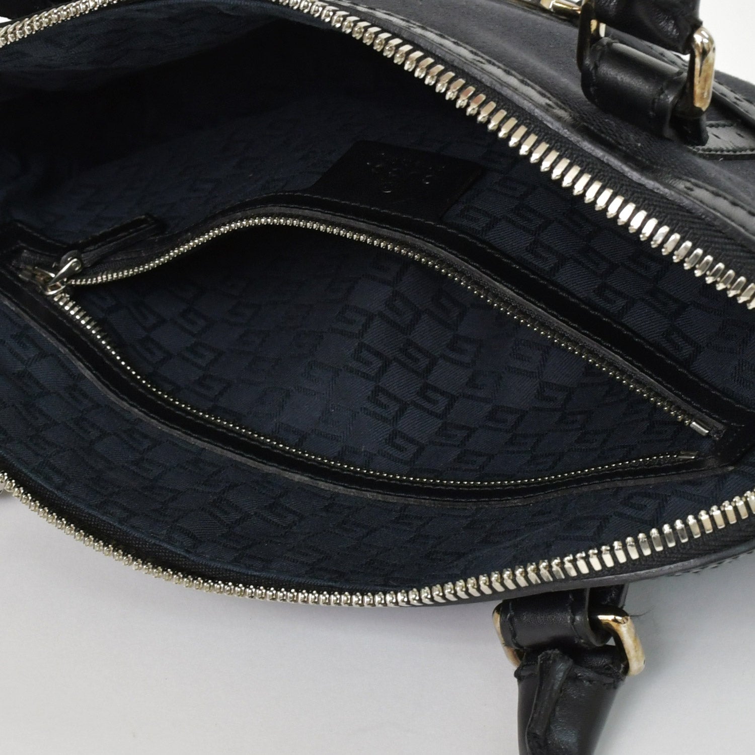 極美品 GUCCI グッチ インターロッキング ハンドバック 114882 001998 キャンバス レザー ブラック シルバー金具 中古 4b010069