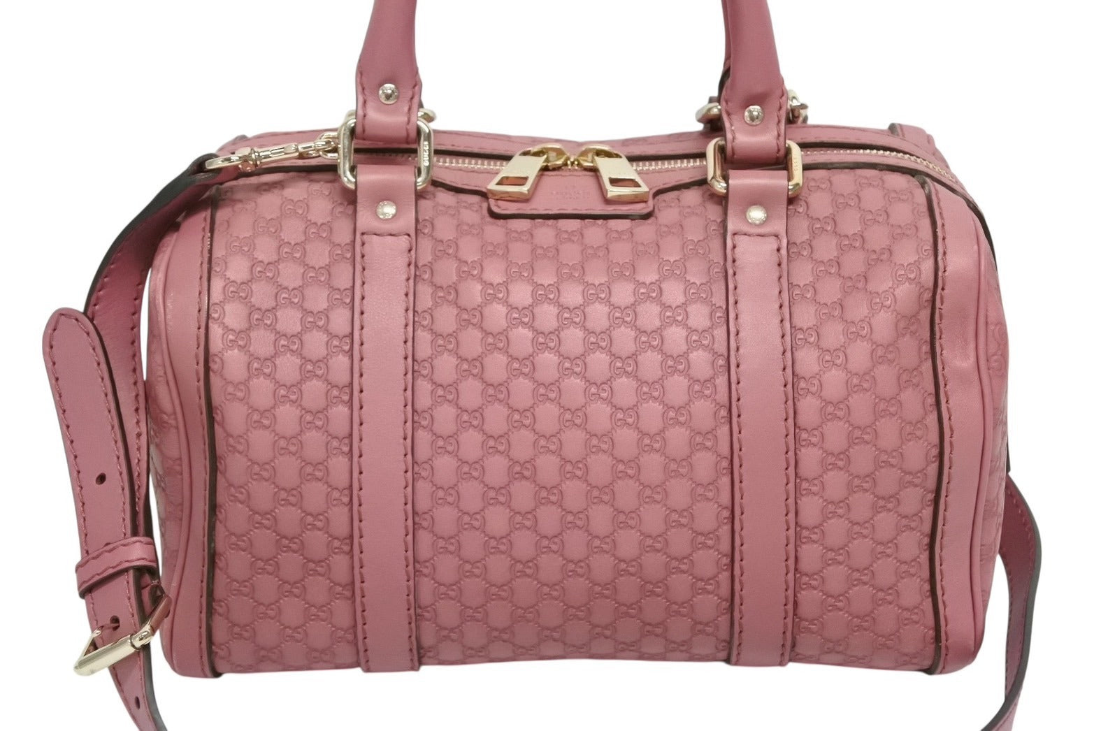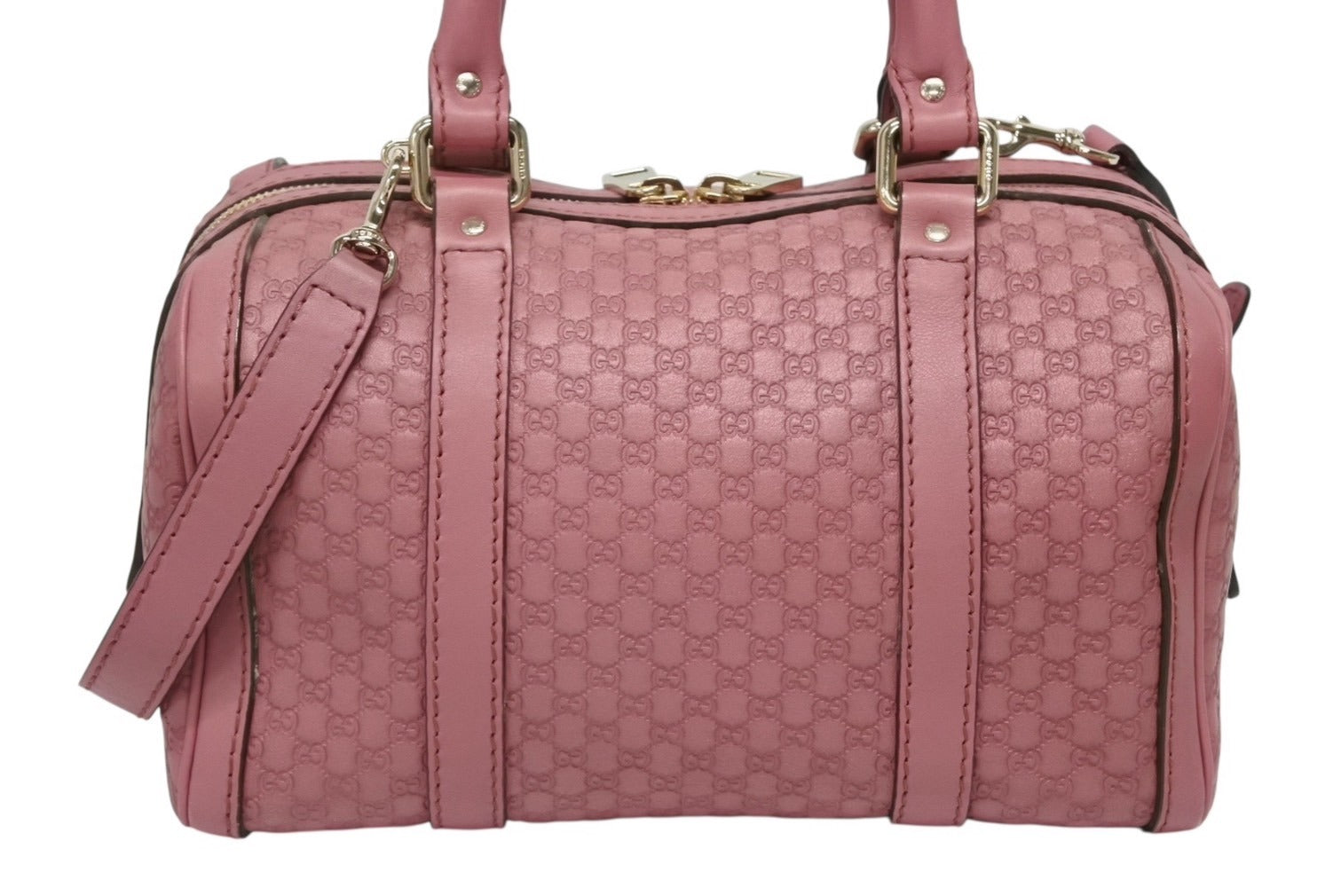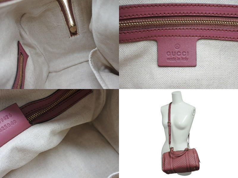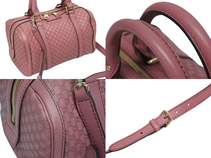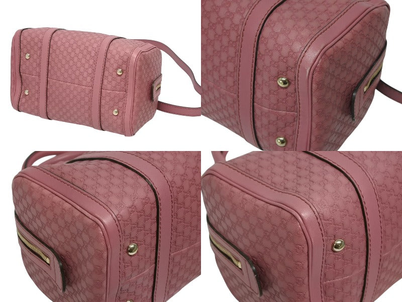 極美品 GUCCI グッチ マイクロGG ボストンバッグ ハンドバッグ 269876 525040 イタリア製 レザー ピンク ゴールド金具 中古 4b010106