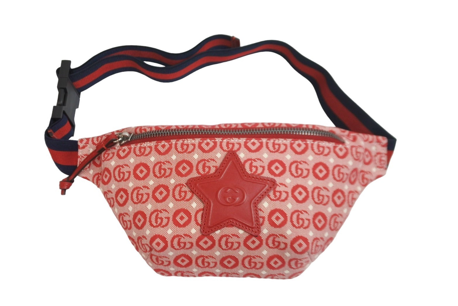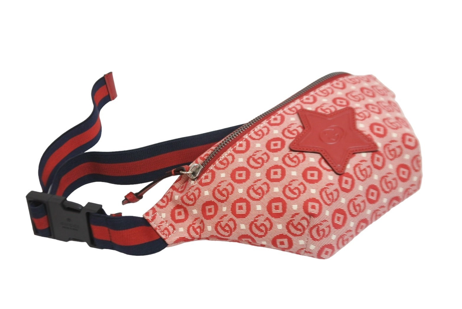 こちらのお子さま向けベルトバッグには、レッドにアレンジしたグッチを象徴するそのモチーフをあしらい、インターロッキングGのスター パッチでアクセントを効かせたアイテムです。