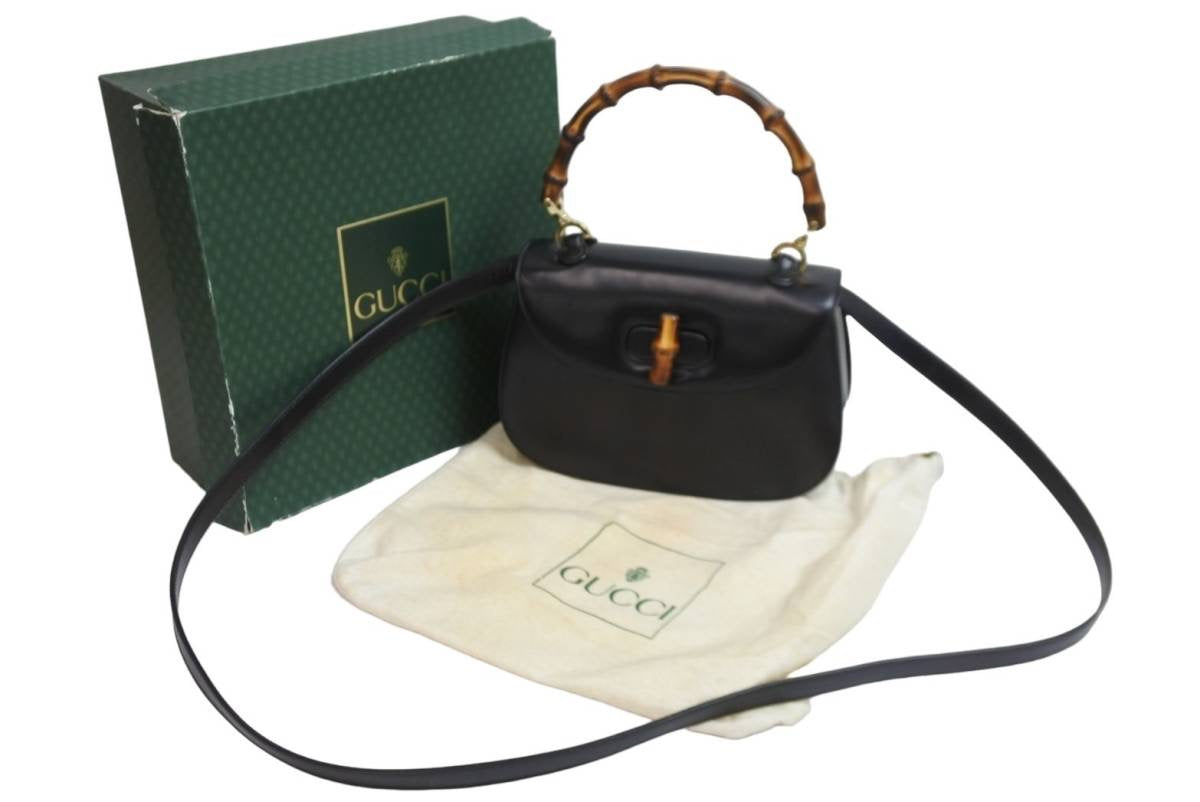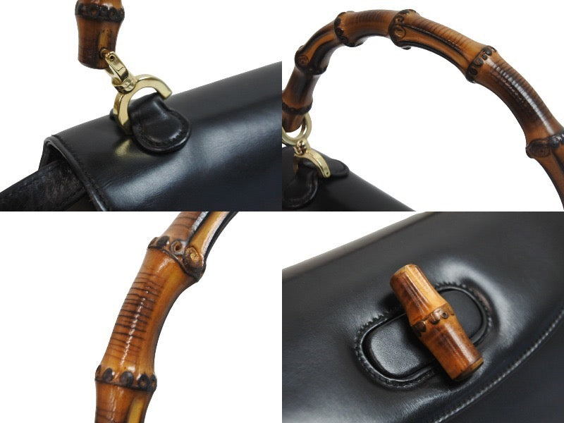 GUCCI グッチ バンブーミニ 2WAYバッグ ハンドバッグ ショルダーバッグ 000 01 0188 カーフレザー ブラック 美品 中古 54863