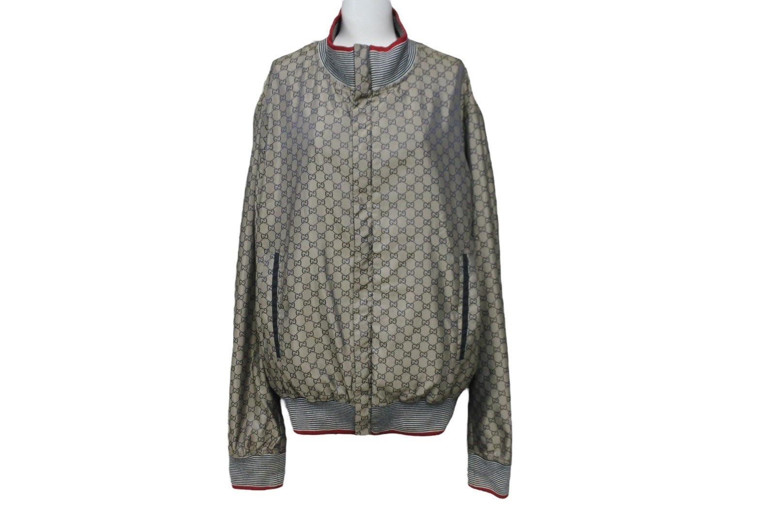 GUCCI グッチ ブルゾン ナイロン GG柄 ジップアップジャケット ベージュ size52 232050 Z7313 シルバー金具 美品 中古 55164