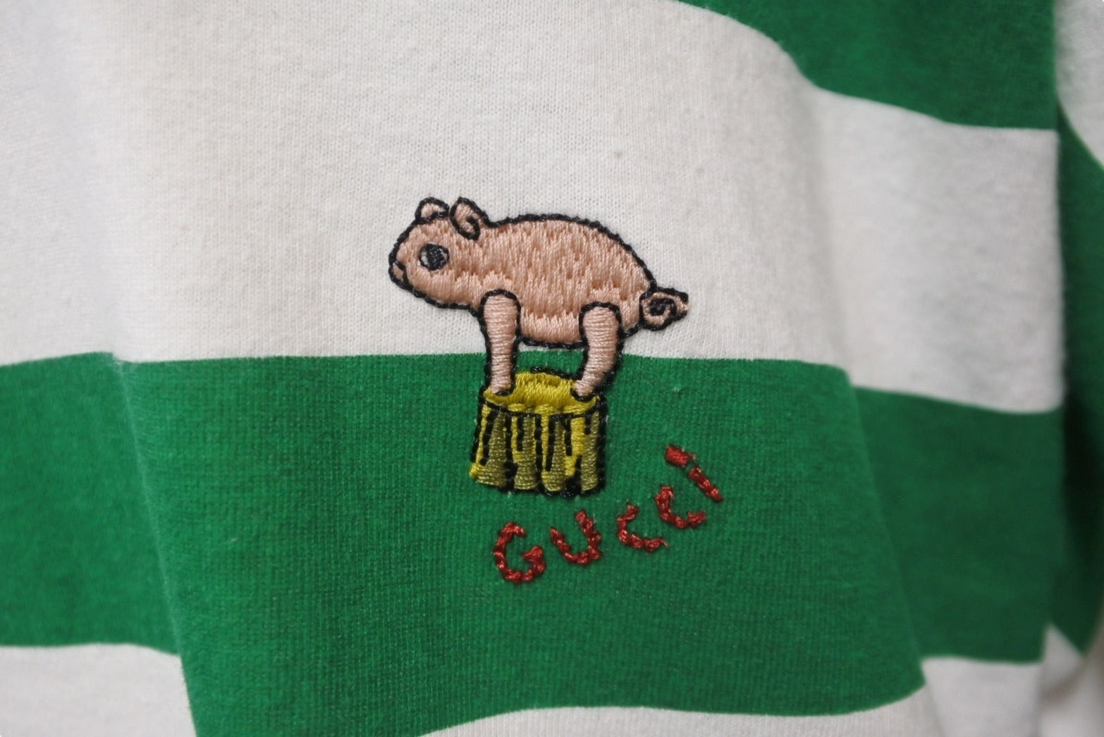 ストライプデザインと、胸にワンポイントの刺繍が可愛いです。