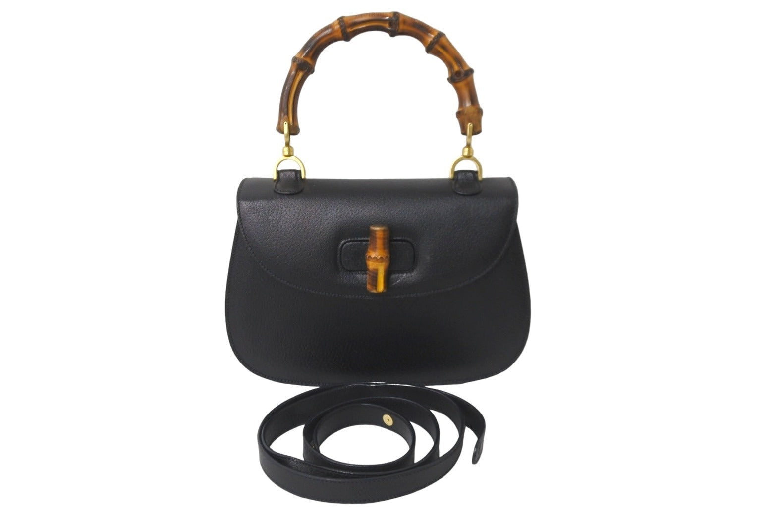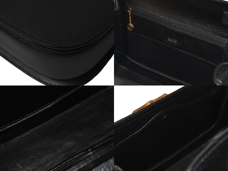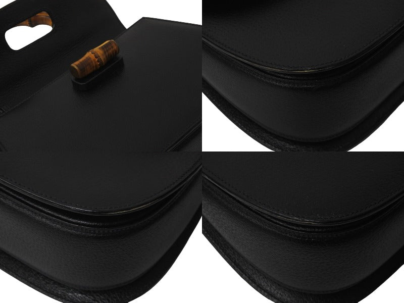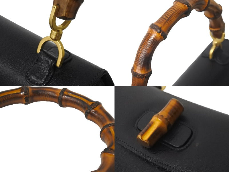 GUCCI グッチ バンブー 2WAY ショルダーバッグ ブラック レザー ハンドバッグ 鞄 カバン 斜め掛け 黒 ウッド 良品 中古 59073