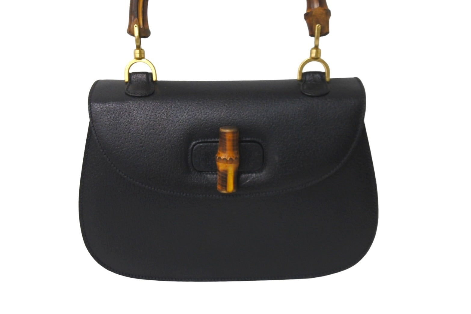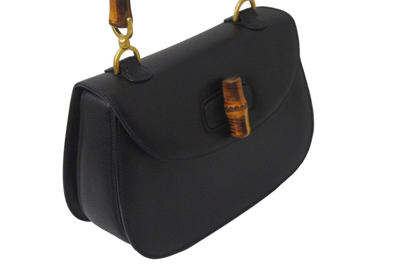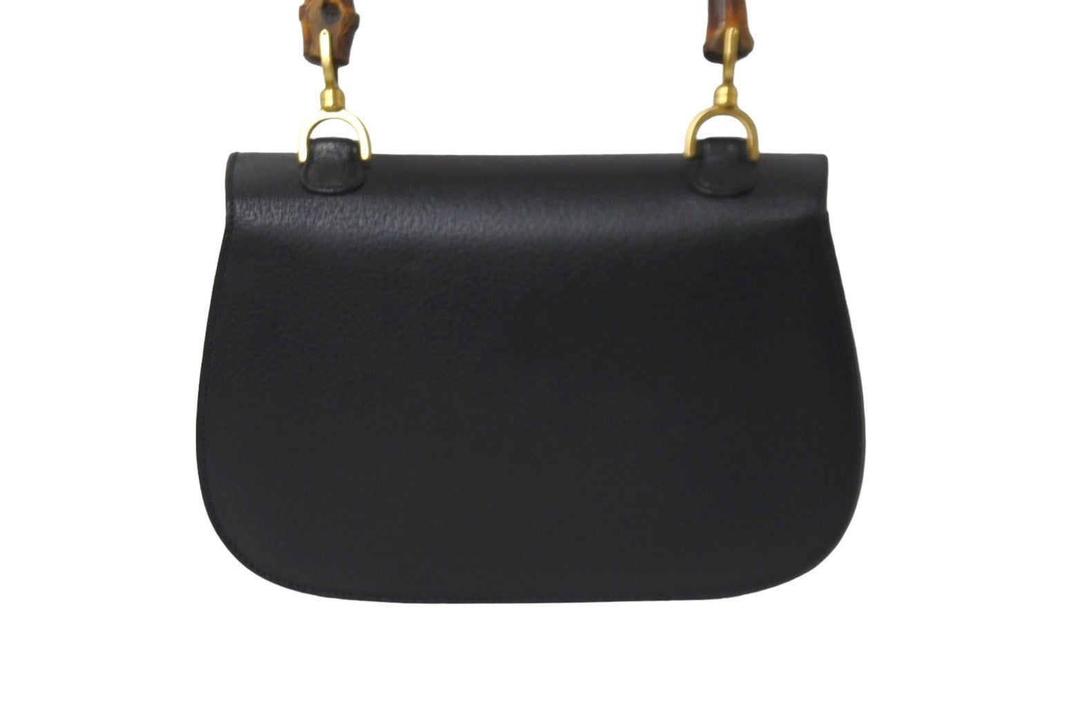 GUCCI グッチ バンブー 2WAY ショルダーバッグ ブラック レザー ハンドバッグ 鞄 カバン 斜め掛け 黒 ウッド 良品 中古 59073