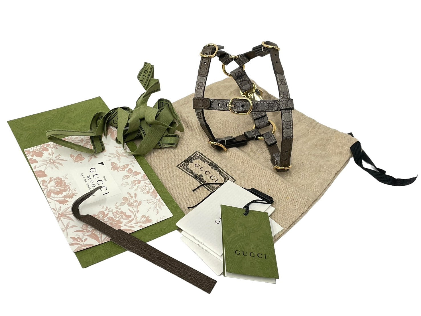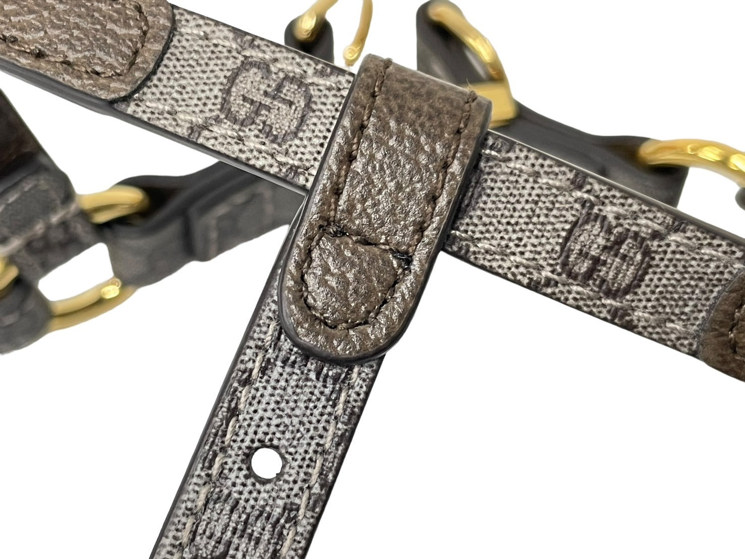 極美品 GUCCI グッチ 犬用ハーネス XSサイズ ドッグ 692965 GG PVC レザー ベージュ ゴールド金具 中古 62975