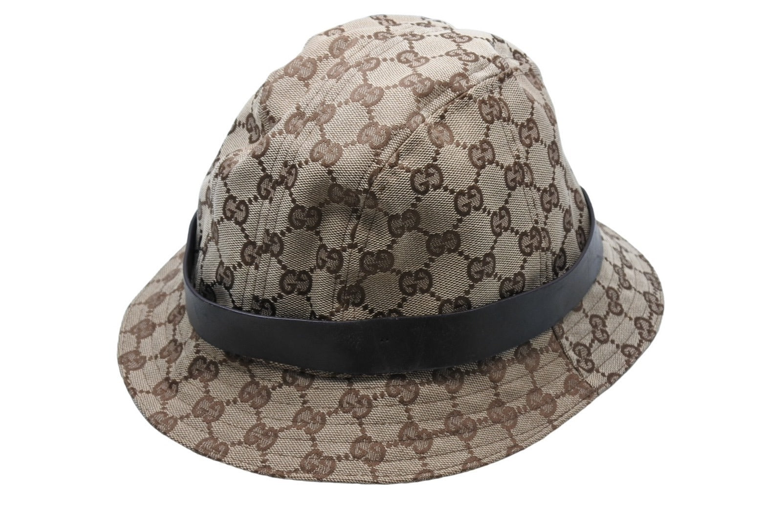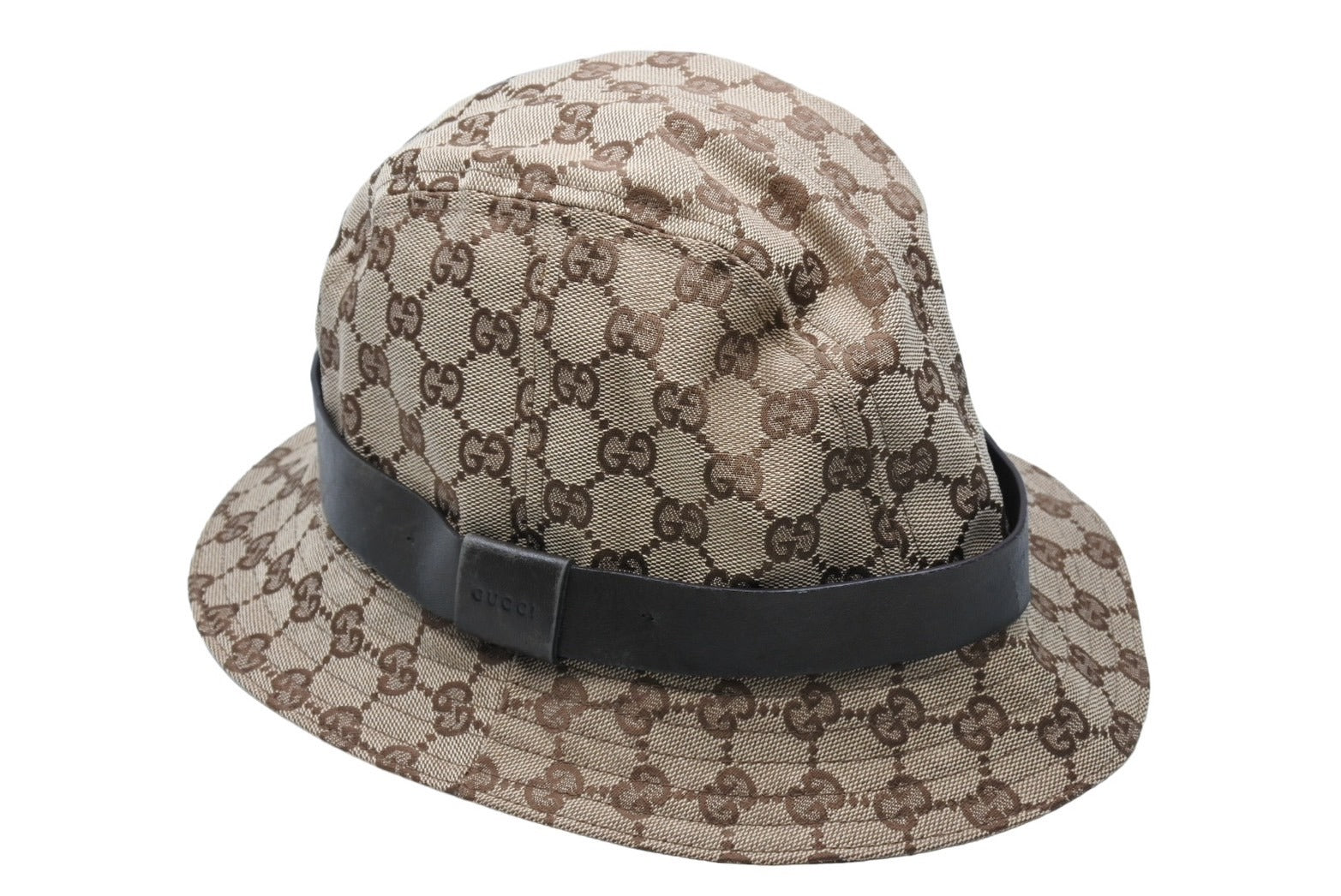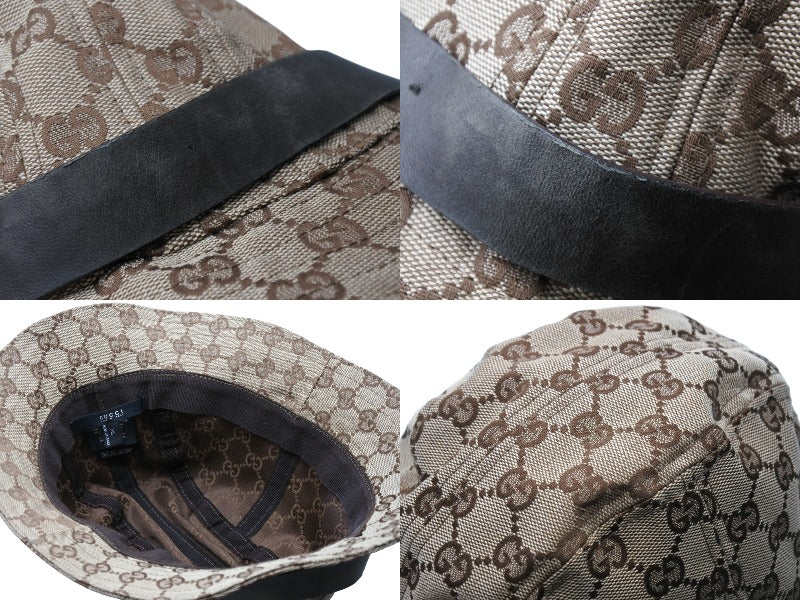 GUCCI グッチ バケットハット 023441 XM116 サイズXL GG柄 キャンバス レザー ベージュ ブラウン 帽子 総柄 良品 中古 65127