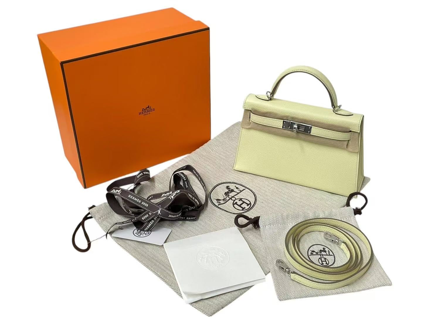 新品未使用 HERMES エルメス ミニケリー 2WAY ハンドバッグ ジョーヌミルトン K刻印 ヴォ―エプソン ショルダー シルバー金具 中古 4b000493