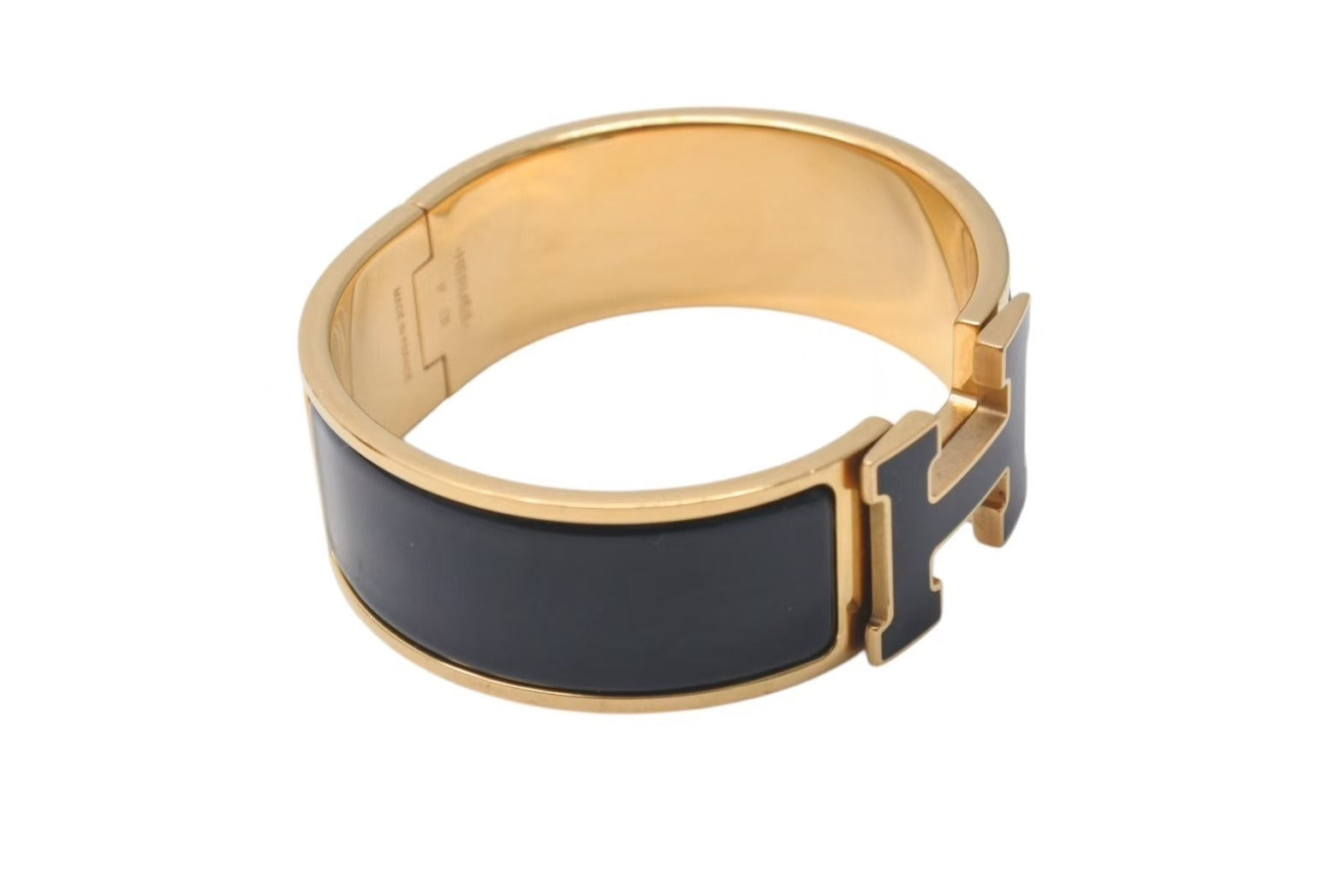 HERMES エルメス クリッククラック ブレスレット Hバングル アクセサリー P刻印 GP ゴールド ブラック 美品 中古 4b001226