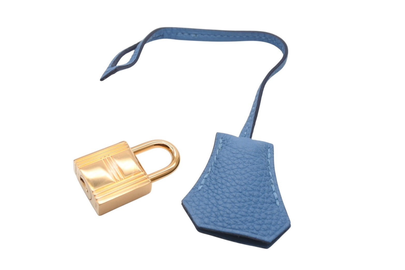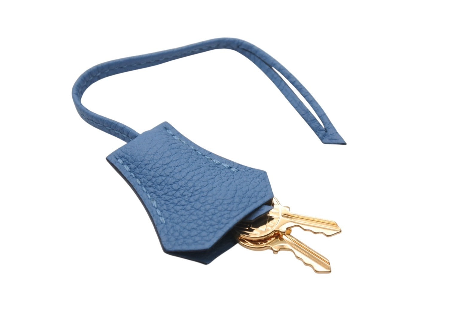 極美品 HERMES エルメス クロシェット カデナ キー セット トゴ アズール シルバー金具 中古 4b006289