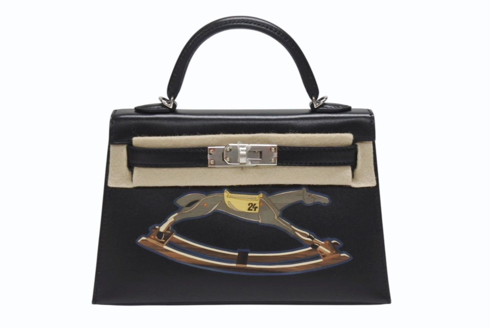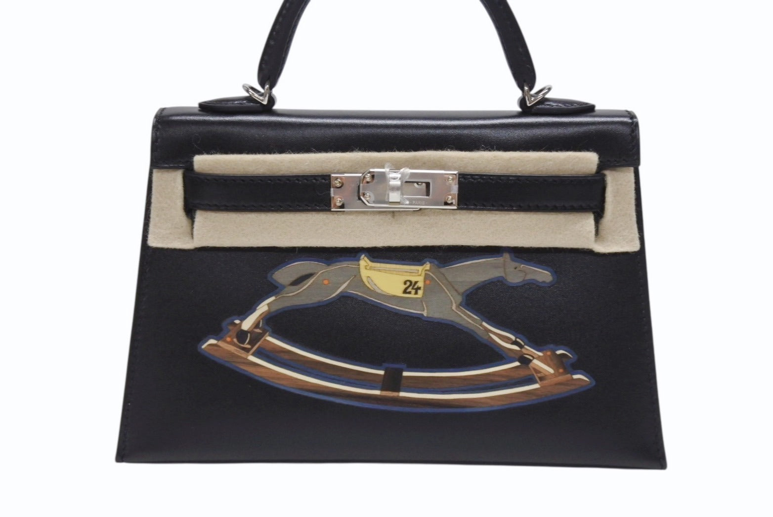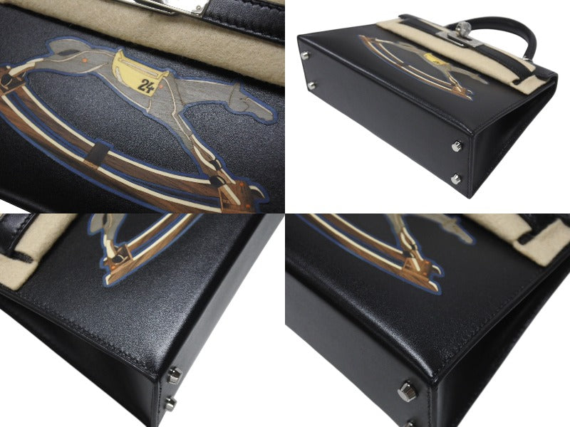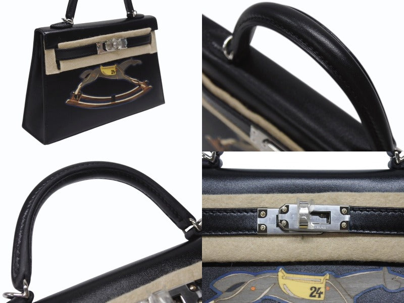 新品未使用 HERMES エルメス ミニケリー2 CHEVAL DE BOIS W刻印 2WAY ヴォーエプソン ブラック SV金具 外縫い 中古 4b007254