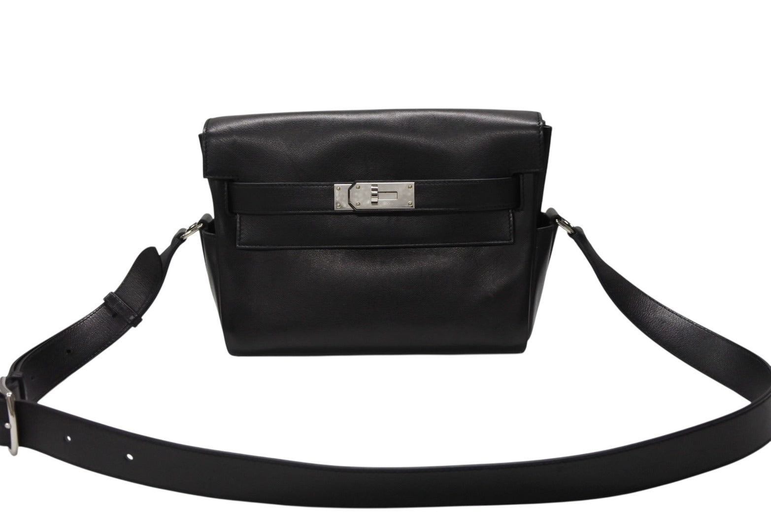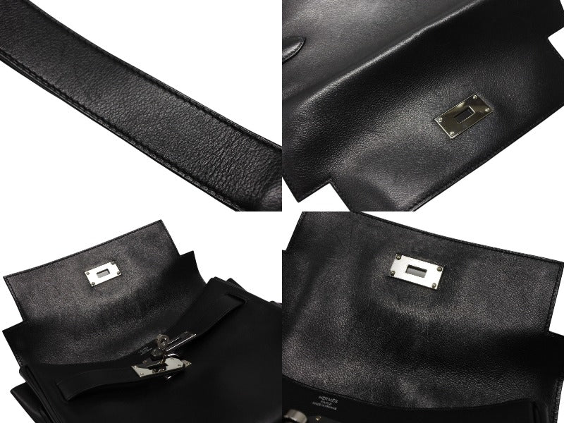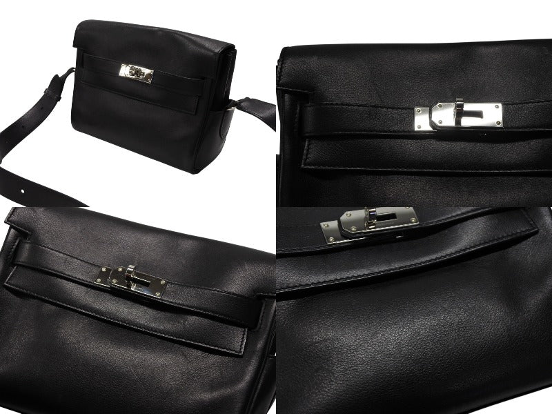 HERMES エルメス ショルダーバッグ ケリーメッセンジャーバッグ エバーグレイン ブラック シルバー金具 W刻印 美品 中古 4b007805