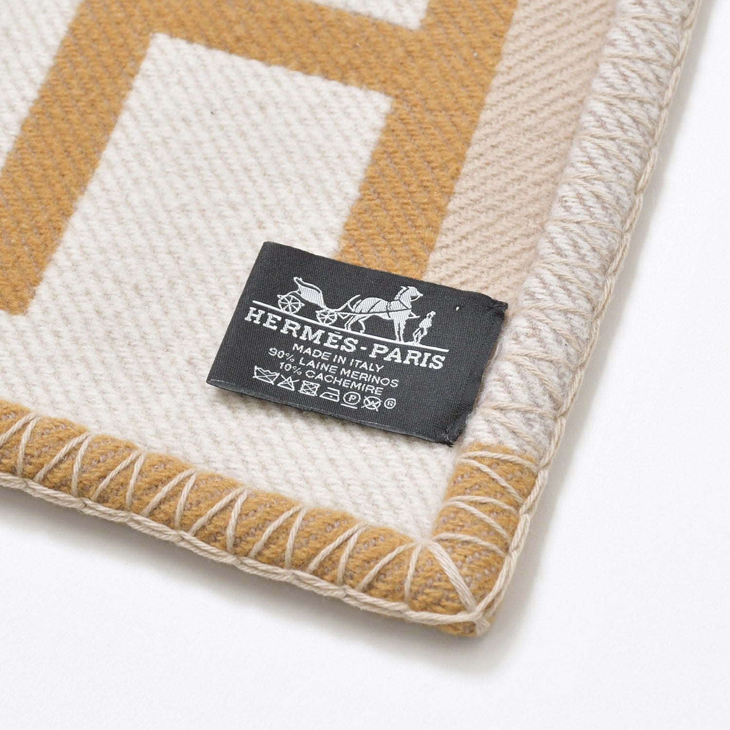 極美品 HERMES エルメス ブレード アヴァロン ブランケット ベージュ ブラウン ウール カシミヤ 中古 4b010045