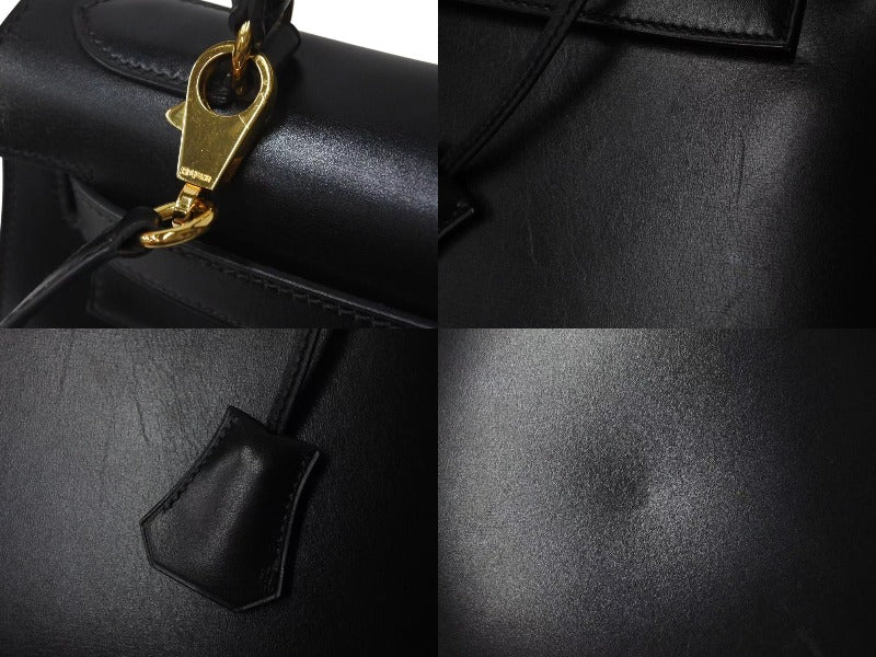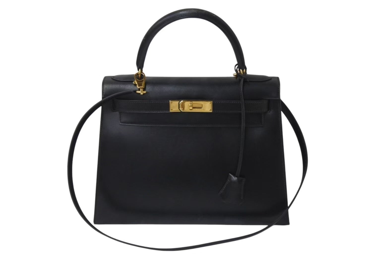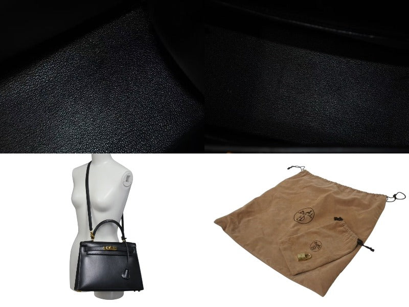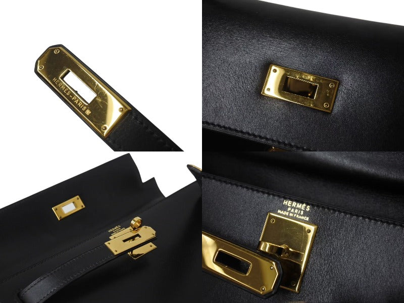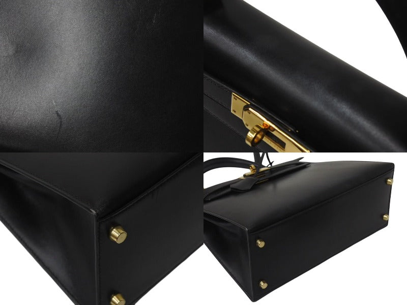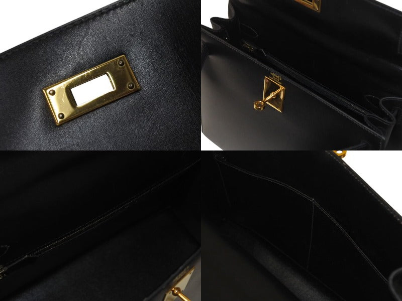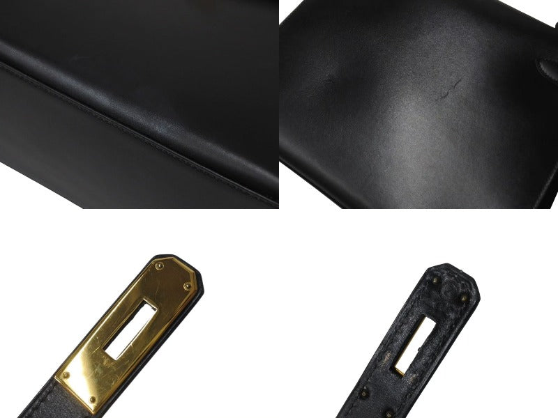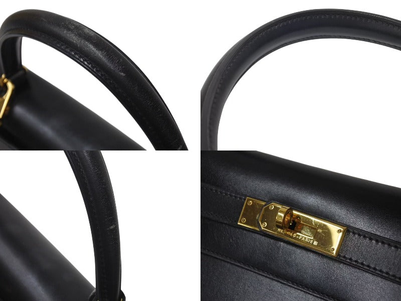 HERMES エルメス ケリー28 外縫い ブラック ○Z刻印 カーフスキン ゴールド金具 ハンドバッグ 美品 中古 4c076669