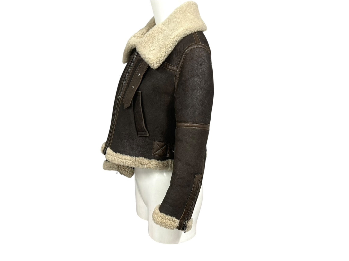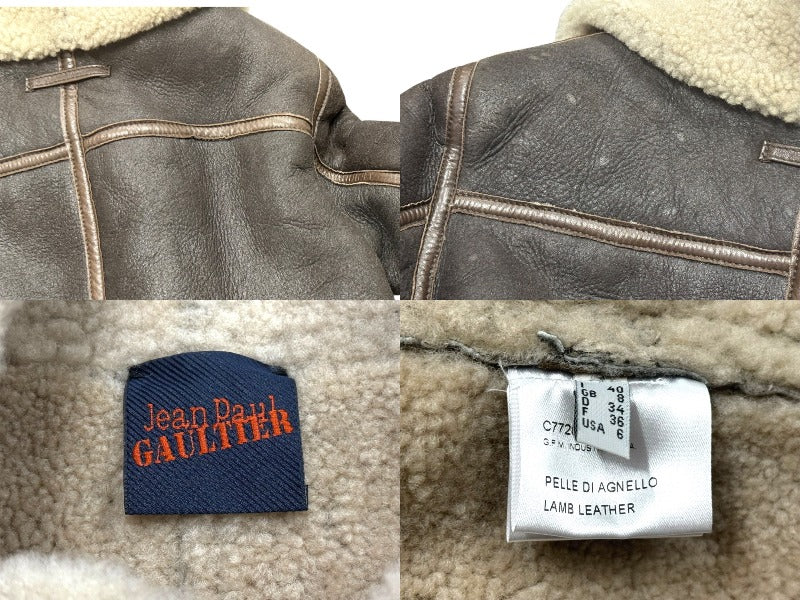 Jean Paul GAULTIER ジャンポールゴルチェ ムートンレザージャケット C772002 90 サイズ40 レディース ブラウン 美品 中古 4b005217