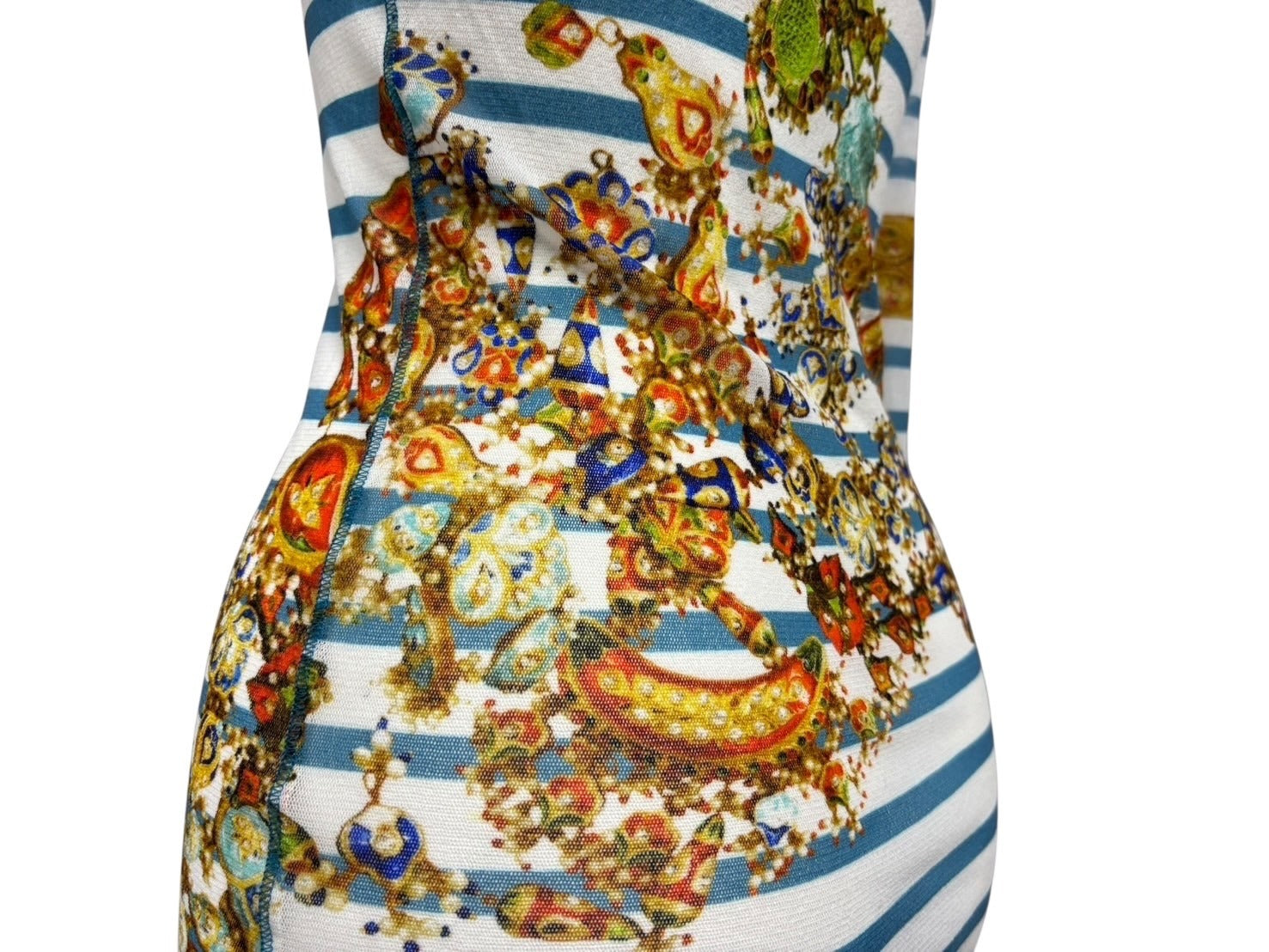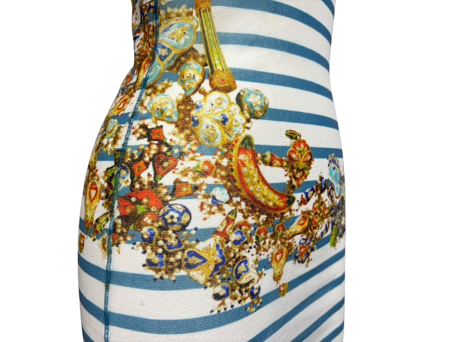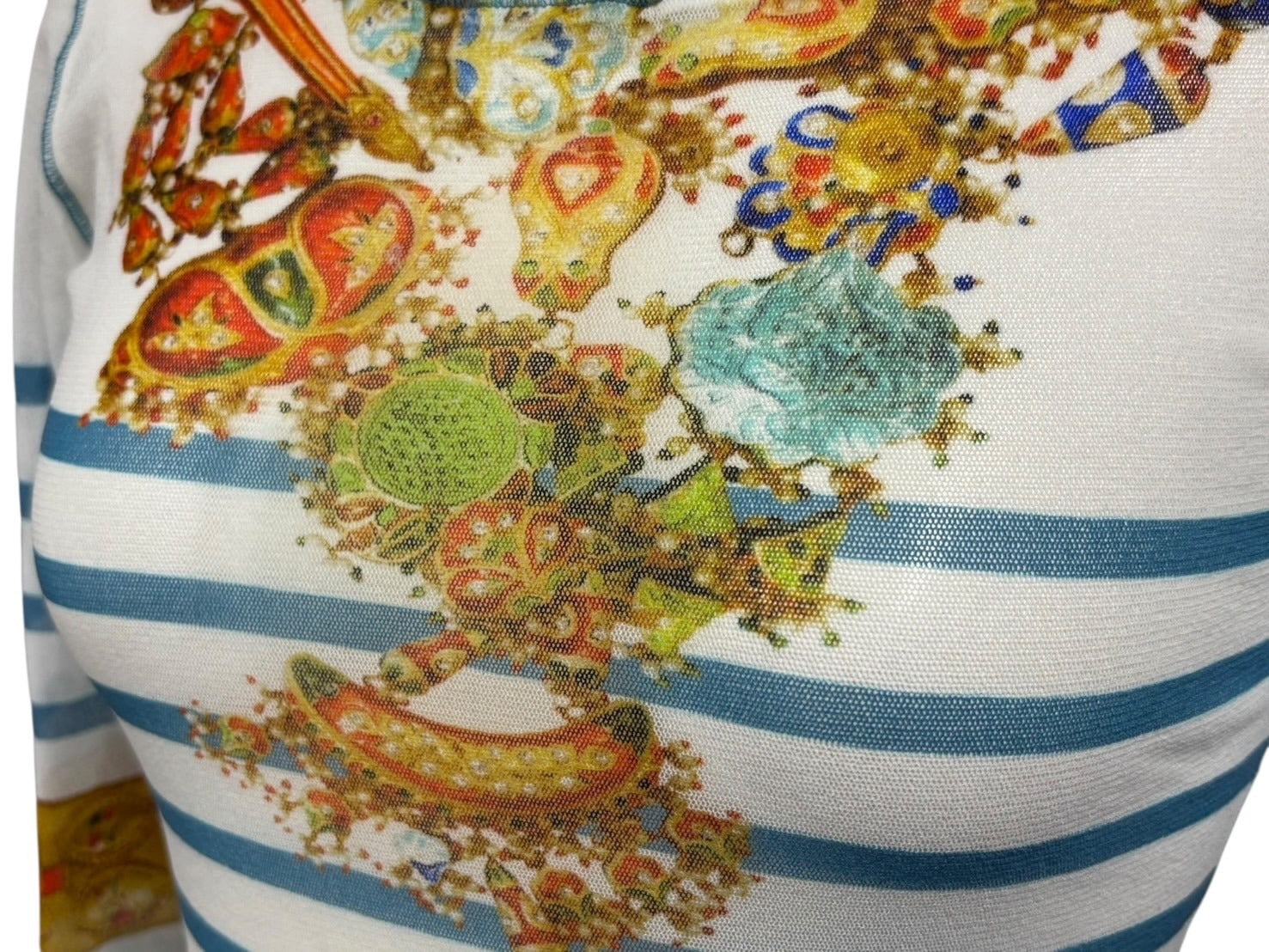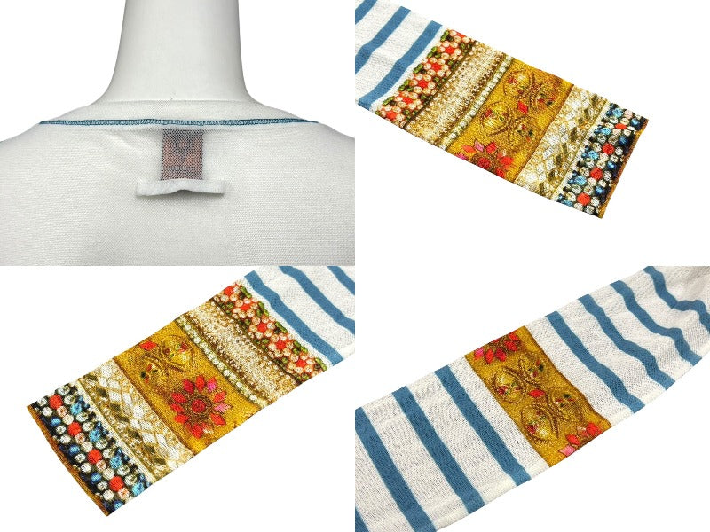 新品同様 JEAN PAUL GAULTIER SOLEIL ジャンポールゴルチエ パワーネット シアートップス ロングカットソー ホワイト マルチカラー 中古 4b009286