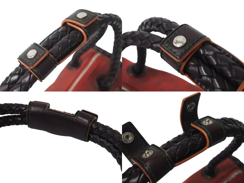編み込みレザーのパイピングやハンドルが魅力的な、品と高級感のあるアイテムです。