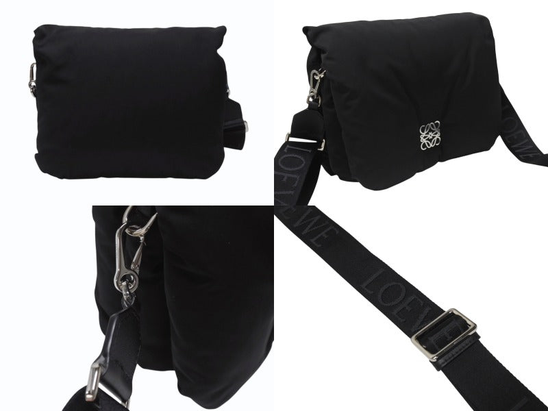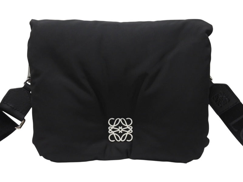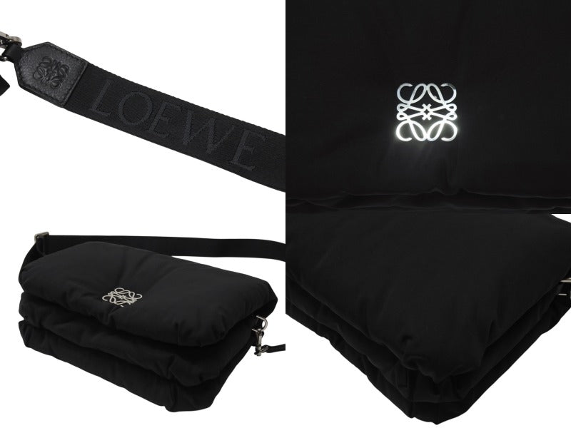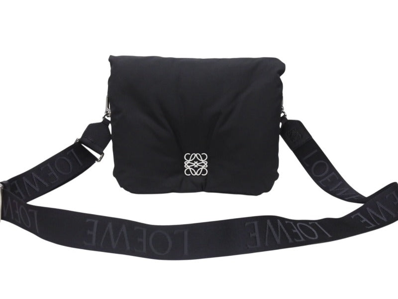 新品未使用 LOEWE ロエベ ショルダーバッグ GOYA PUFFER アナグラム B896G22X01 ナイロン カーフ ブラック シルバー金具 中古 4b005007