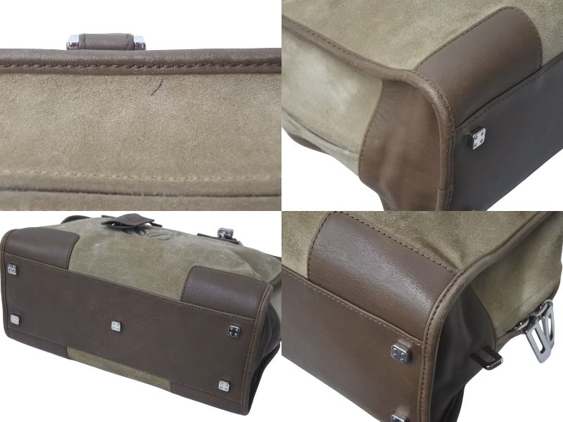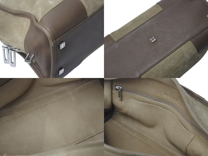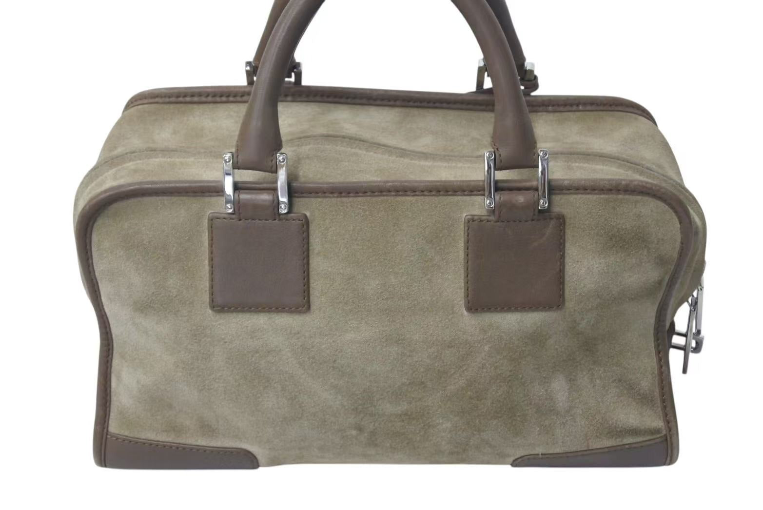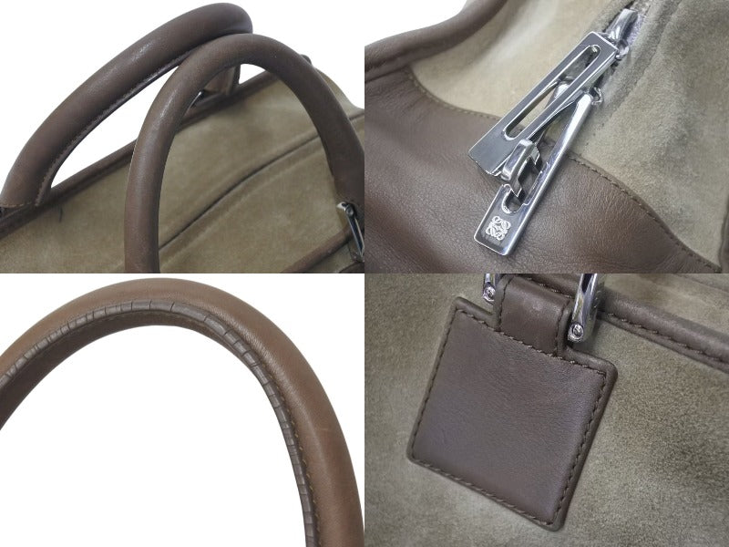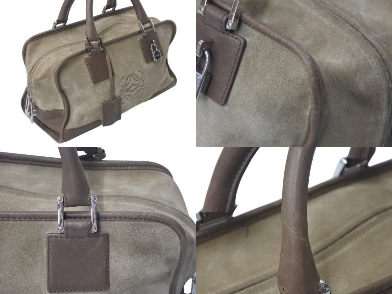 LOEWE ロエベ アマソナ28 ハンドバッグ 010403 アナグラムロゴ スウェード レザー ブラウン シルバー金具 良品 中古 4c073673