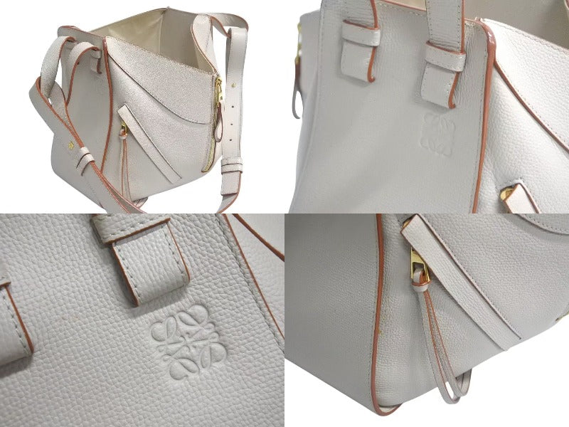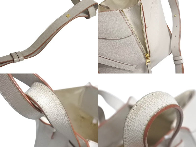 LOEWE ロエベ ハンモック スモールバッグ ショルダーバッグ ロゴ 2WAY 062125 カーフレザー ベージュ ゴールド金具 美品 中古 4c073965