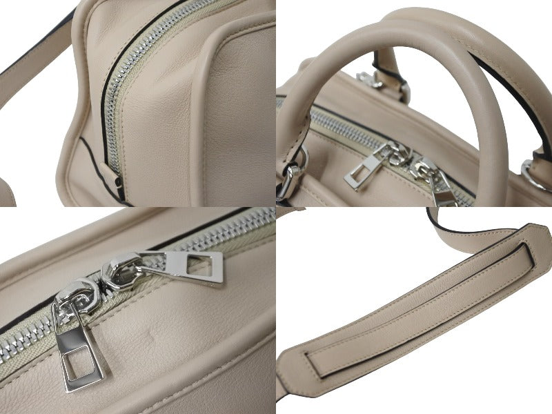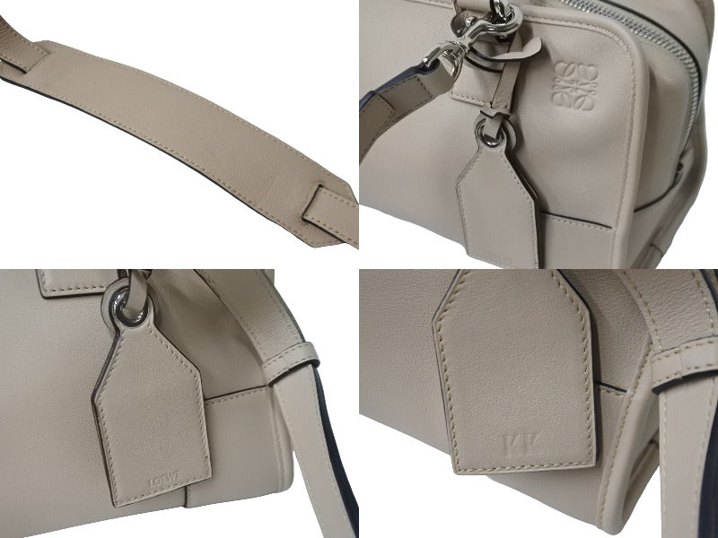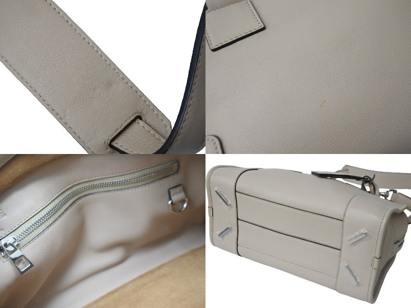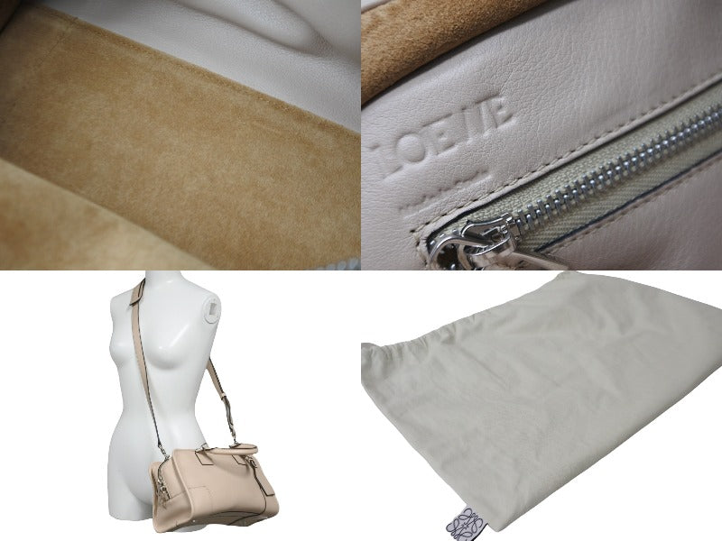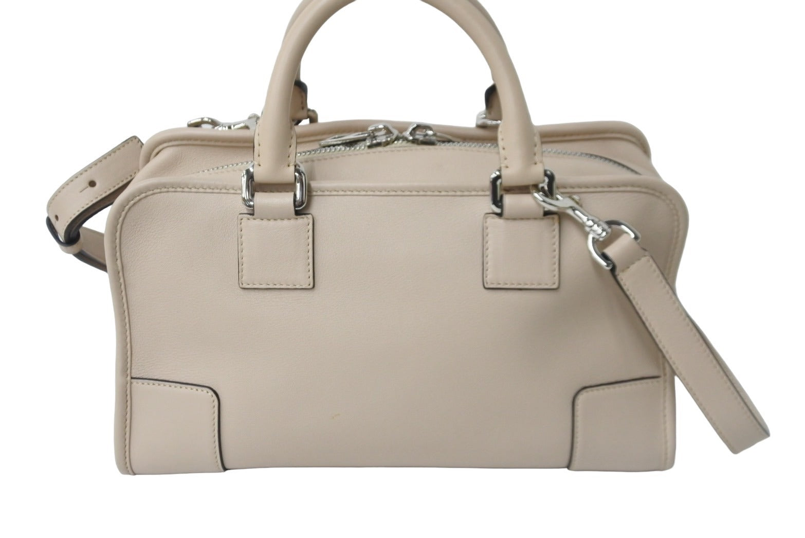 LOEWE ロエベ 2WAYハンドバッグ アマソナ28 アナグラム レザー ベージュ シルバー金具 美品 中古 56863