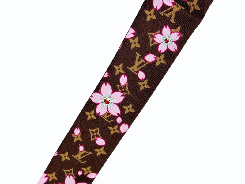 極美品 LOUIS VUITTON ルイヴィトン 村上隆 バンドーBB スカーフ チェリーブロッサム モノグラム M96084 シルク ブラウン 中古 4b005388