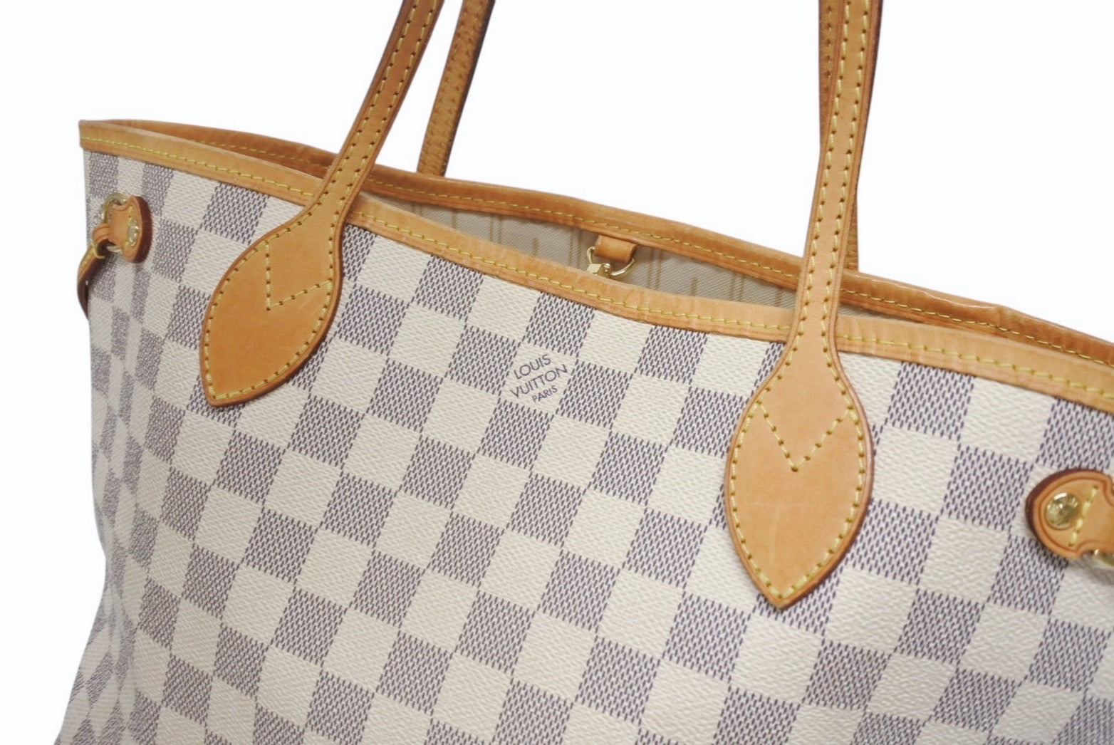 タイムレスなデザインと伝統的なディテールが融合した「ネヴァーフル PM」。ダミエ・アズール キャンバスにヌメ革のトリミングをあしらった大容量ながら取り回しやすいアイテムです。