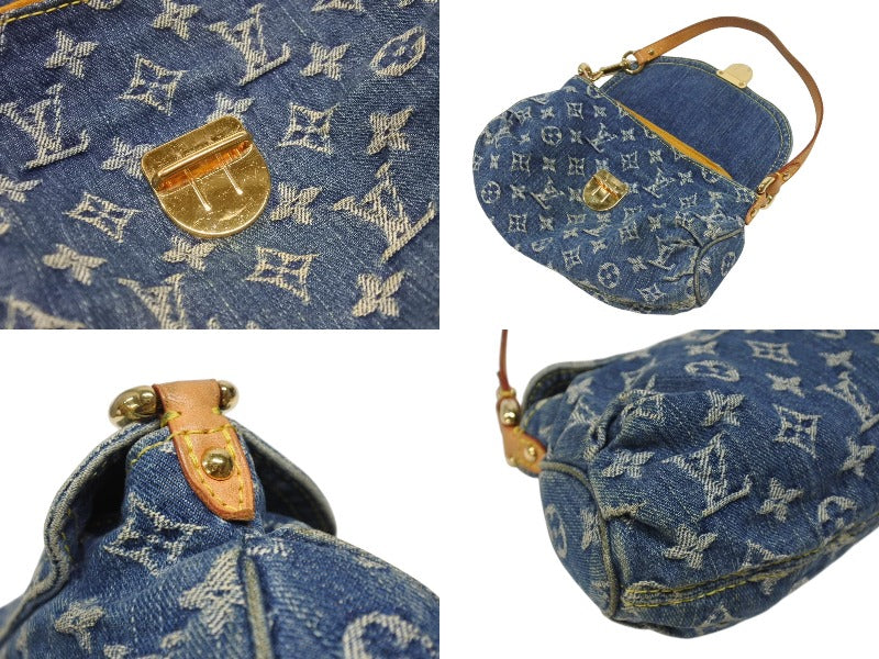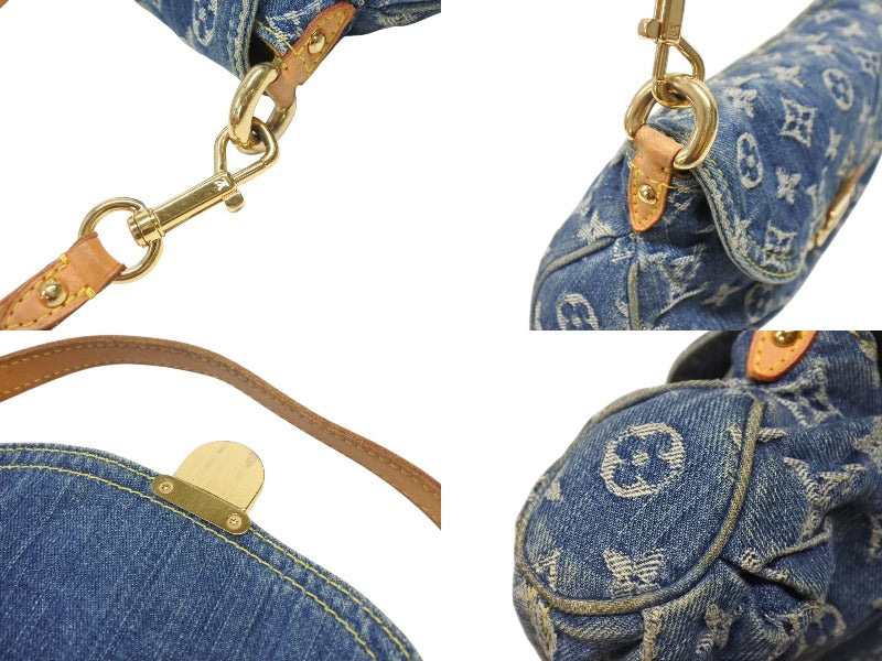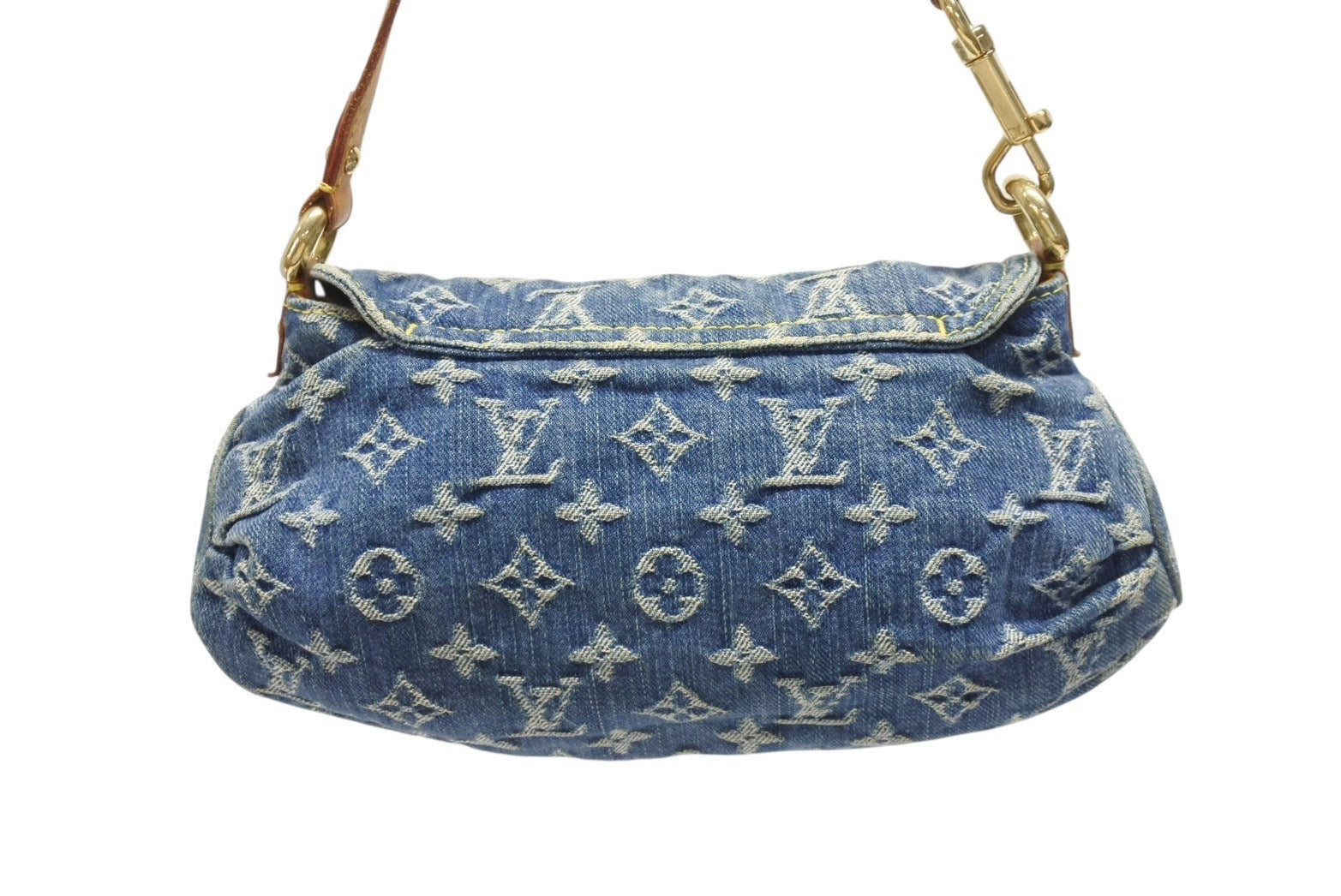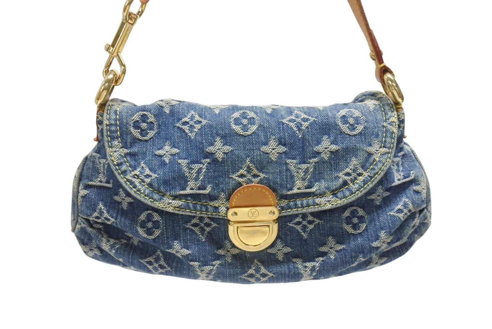 LOUIS VUITTON ルイヴィトン ミニプリーティ ワンショルダーバッグ M95050 モノグラム デニム レザー ゴールド金具 美品 中古 4b006648