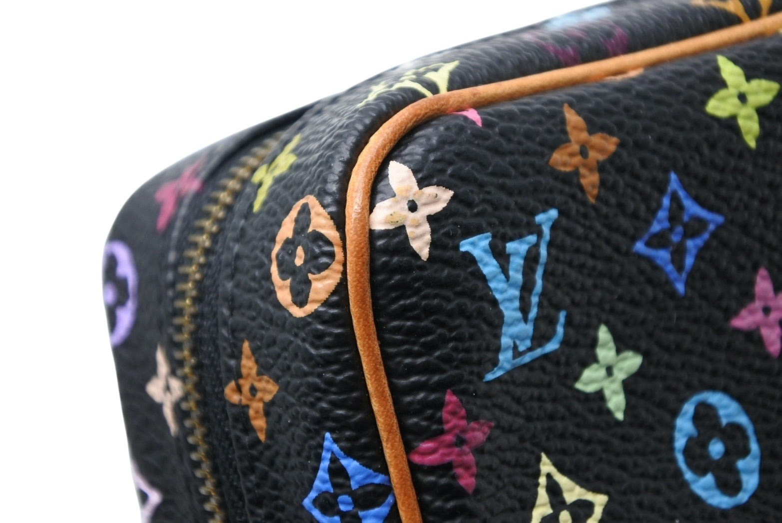 極美品 LOUIS VUITTON ルイヴィトン ポーチ トゥルース ワピティ ポーチ M58034 モノグラム マルチカラー ブラック 村上隆 中古 4b008113