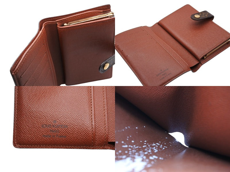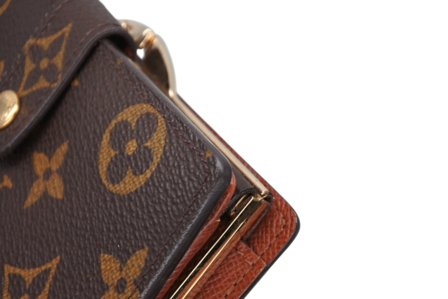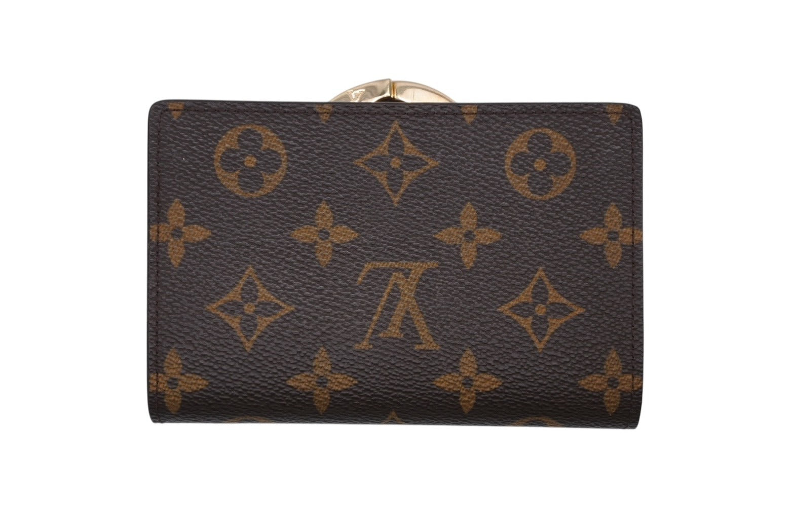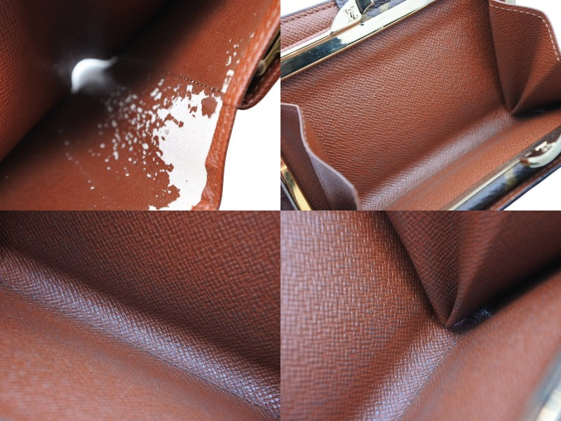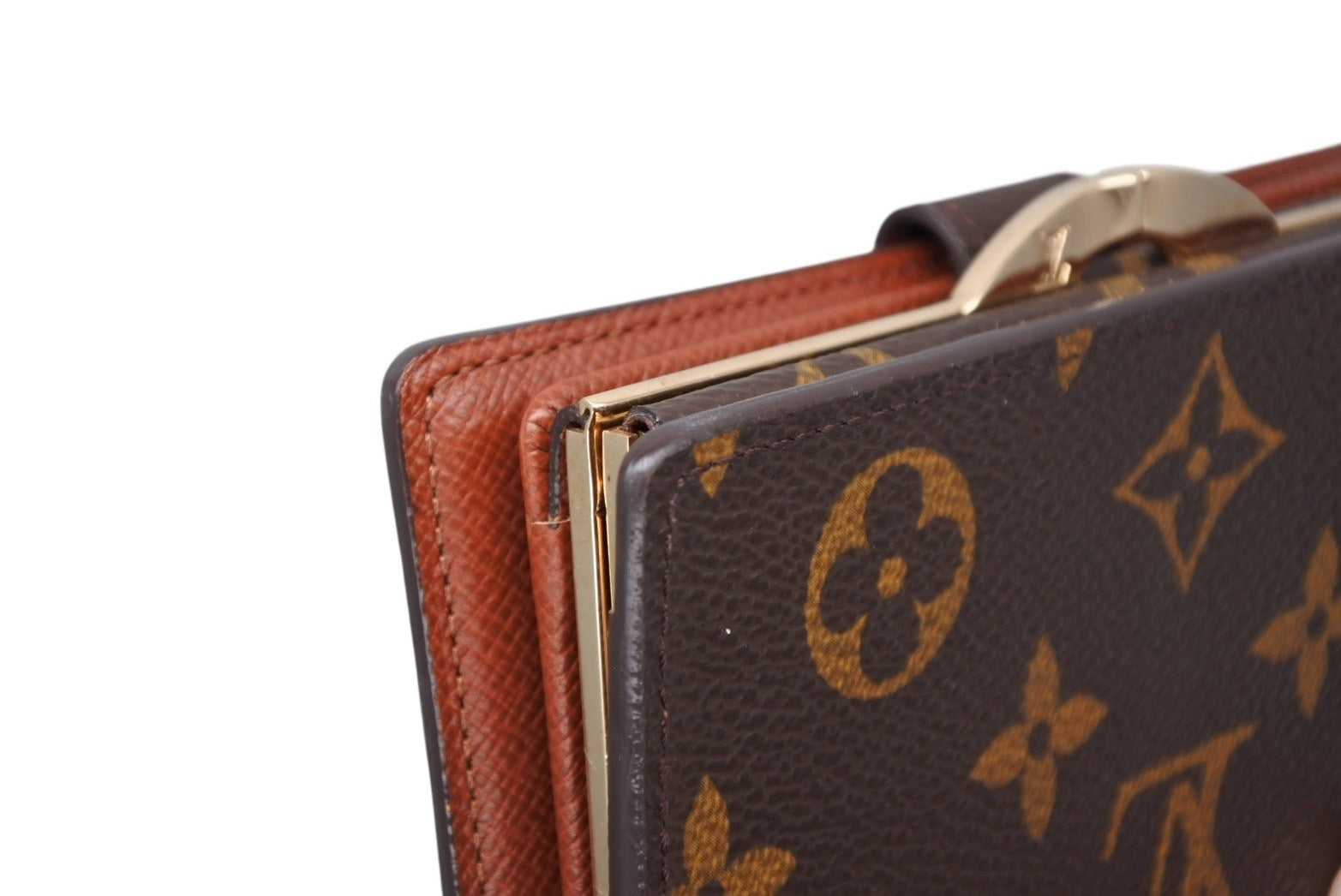 LOUIS VUITTON ルイヴィトン モノグラム 二つ折り財布 がま口 PVC メタル ブラウン ゴールド金具 美品 中古 4b008591