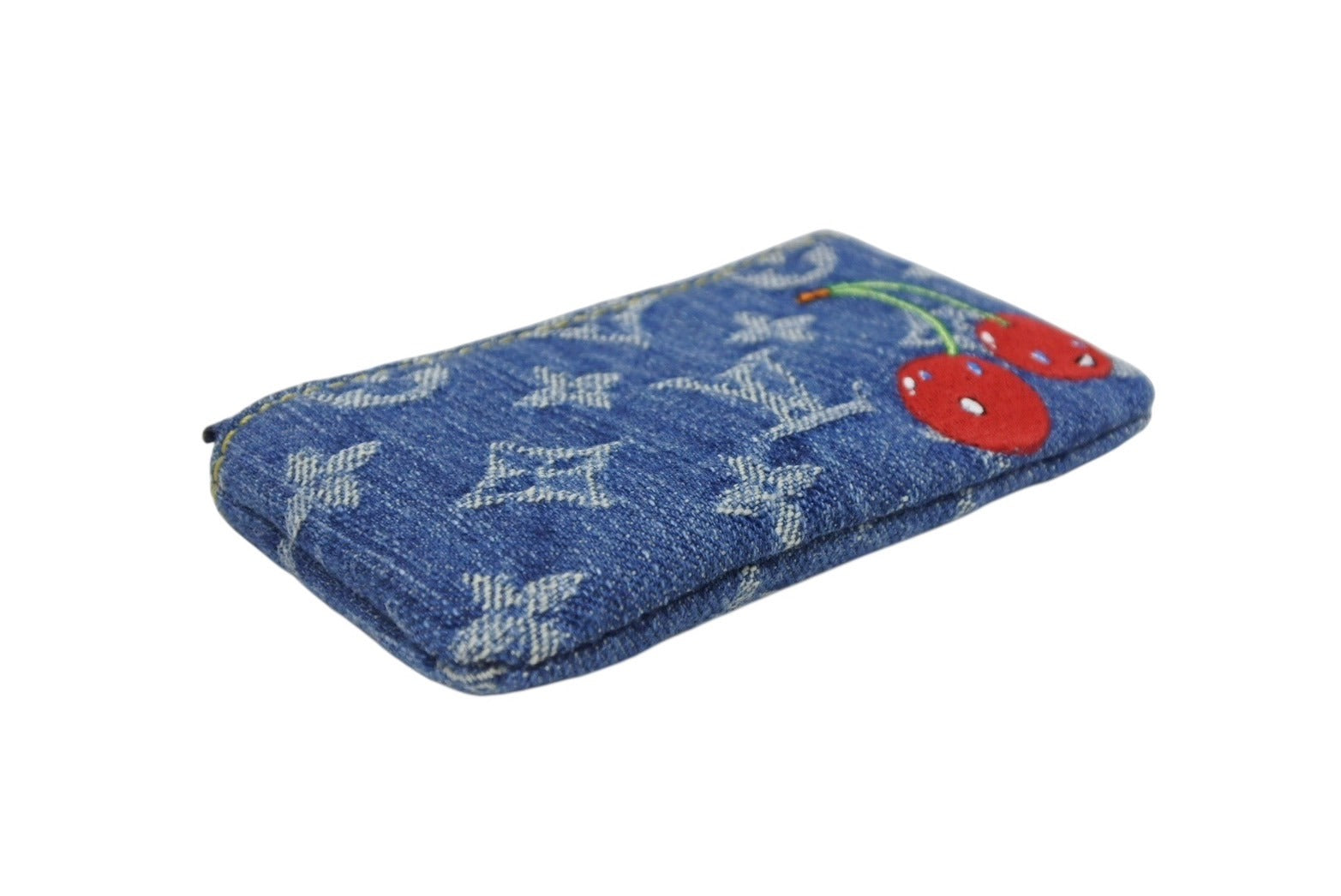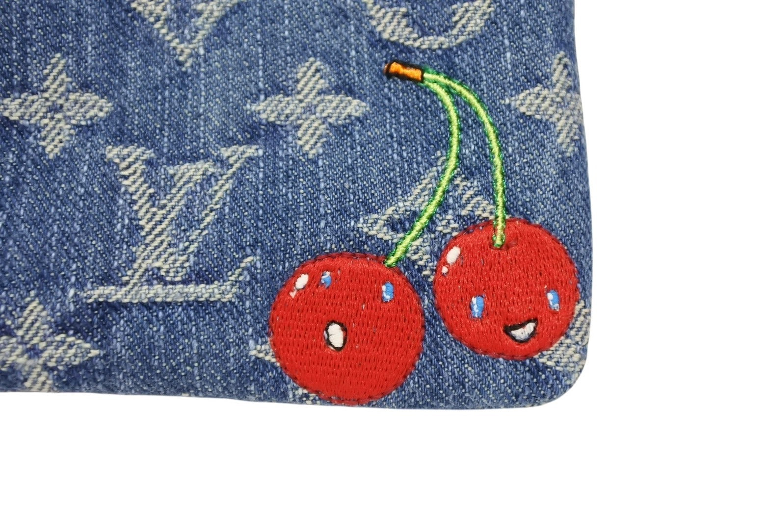 新品未使用 LOUIS VUITTON ルイヴィトン モノグラム デニム カードキーケース ポシェットクレ チェリー 新作 M14938 村上隆 ブルー 中古 4b009229