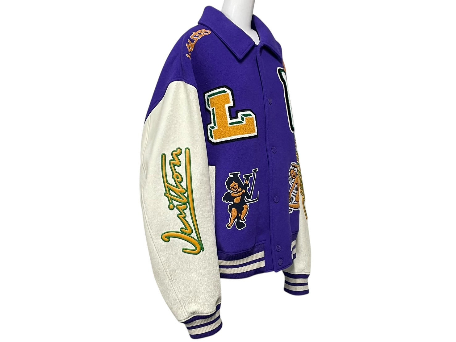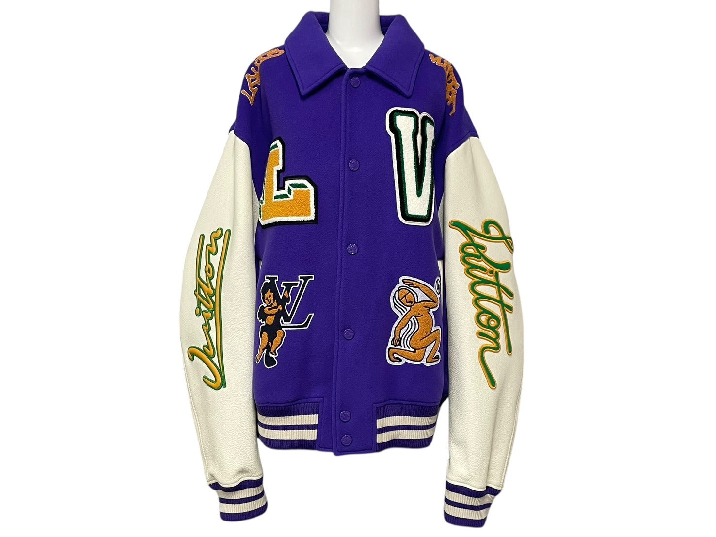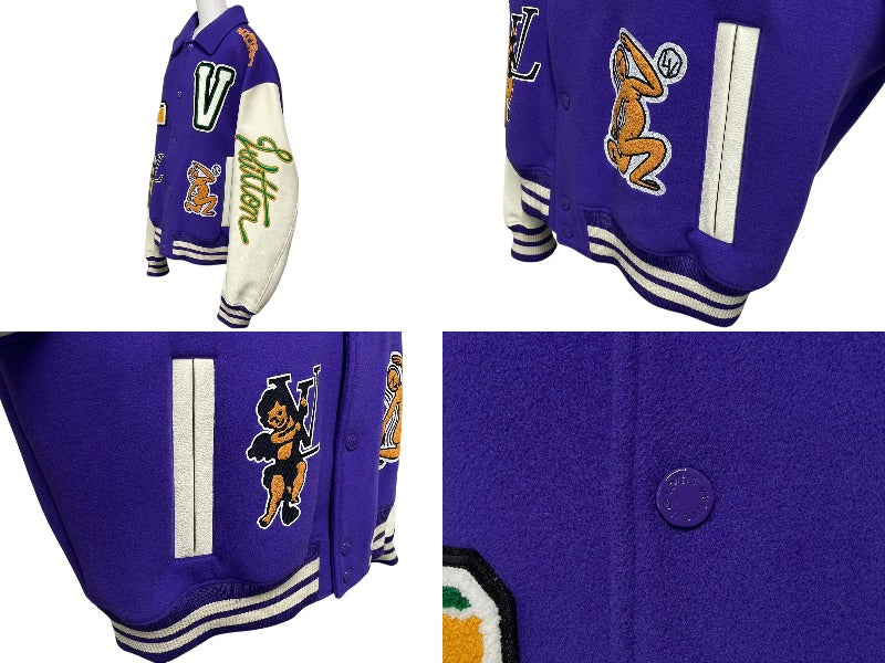 新品同様 LOUIS VUITTON ルイヴィトン 22AW バーシティジャケット RM222 MJY HNL90E サイズ58 マルチパッチ パープル 中古 4b009394