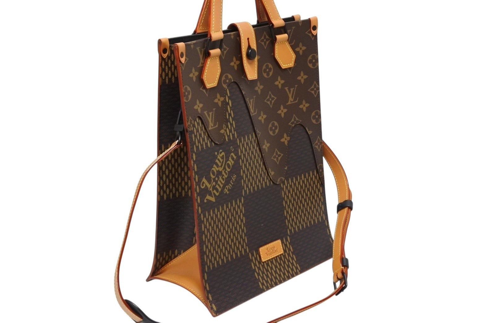 極美品 LOUIS VUITTON ルイヴィトン NIGO LVスクエアード トートバッグ N40355 ブラウン PVC レザー ブラック金具 中古 4b009628