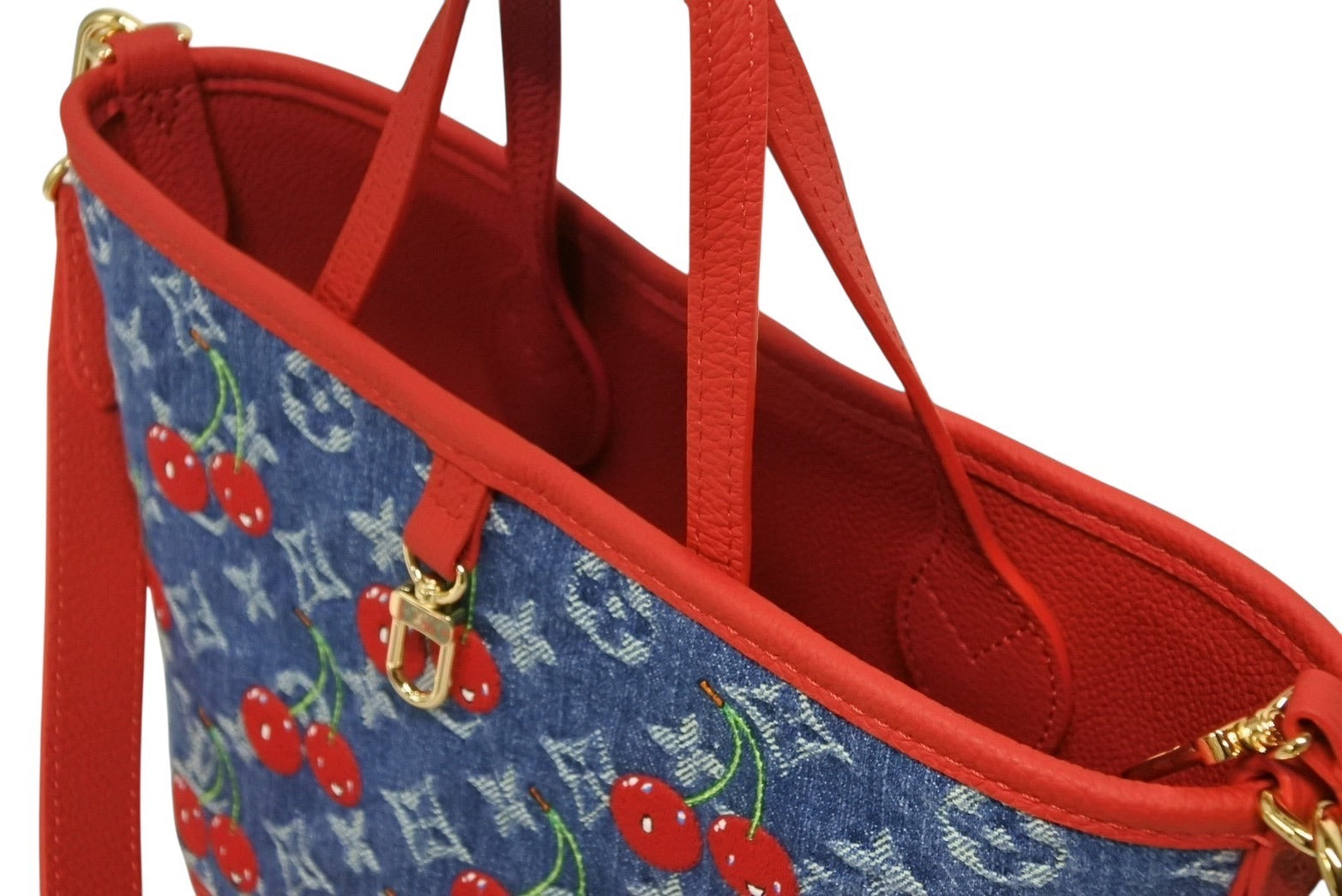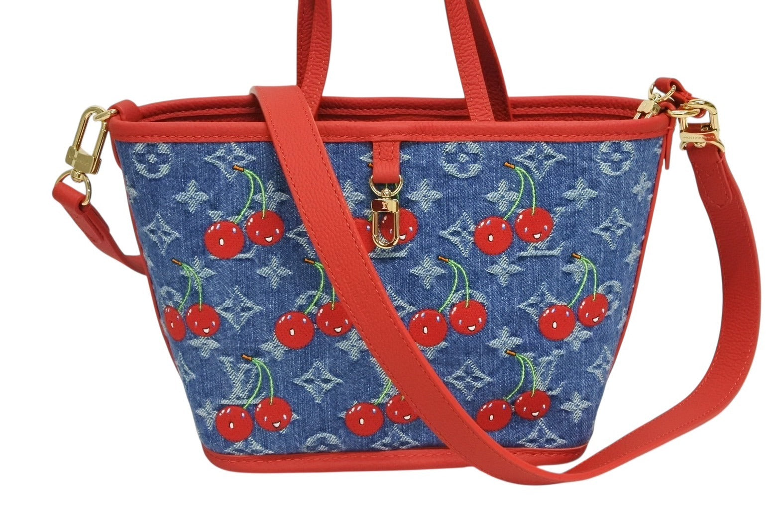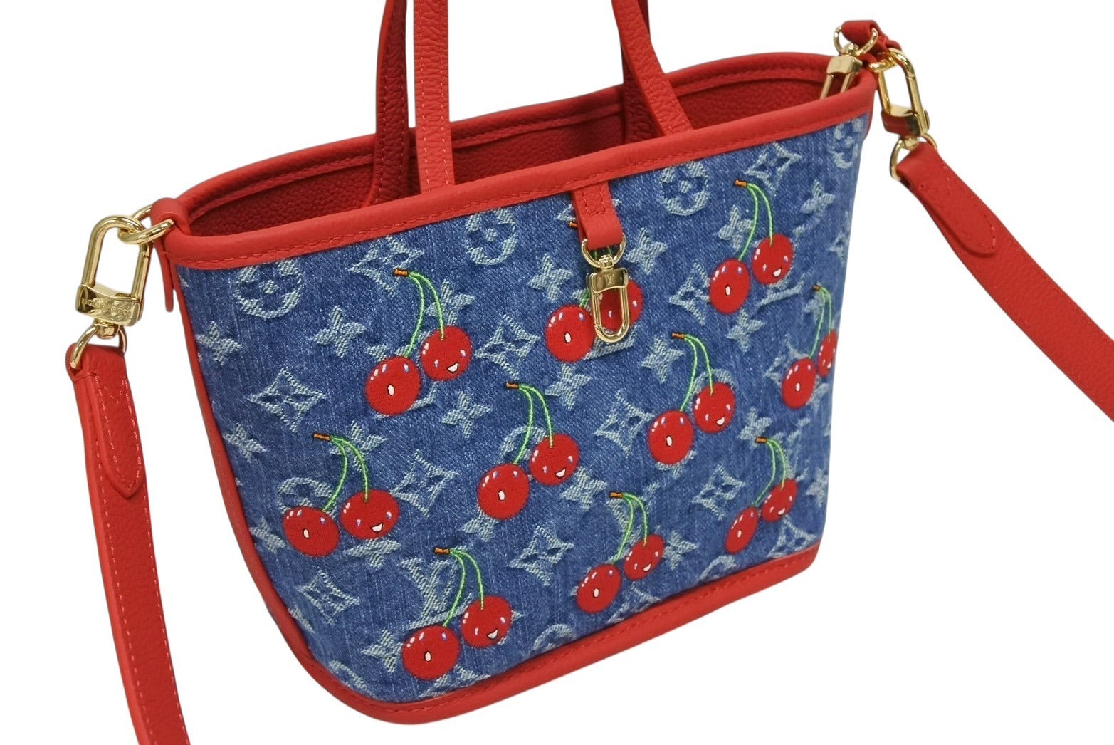 モノグラム・デニムに、この日本人アーティストのアイコニックなチェリー・モチーフの刺繍が鮮やかな彩りを添え、レッドのレザートリミングで引き立てました。