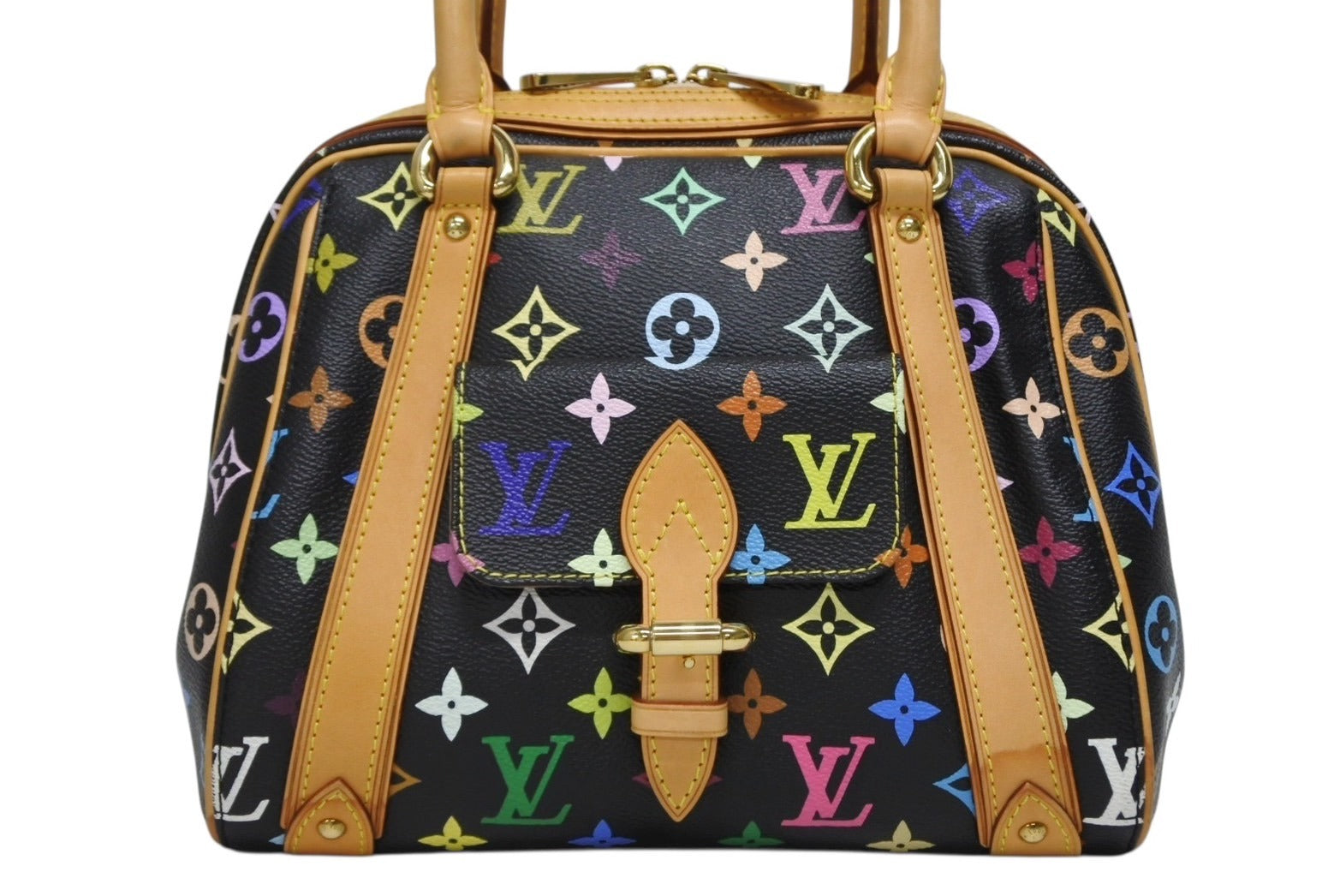 極美品 LOUIS VUITTON ルイヴィトン モノグラムマルチカラー プリシラ M40097 ハンドバッグ ノワール ブラック ゴールド金具 中古 4b009753