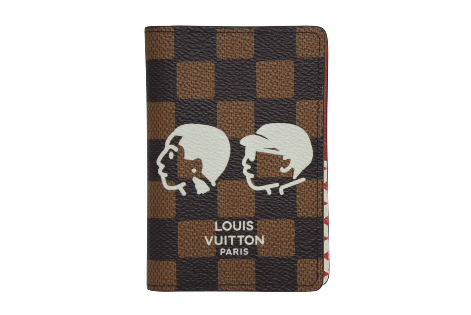 ダミエエベヌ キャンバスにファレル ウィリアムスとそのコラボレーター NIGO®の顔のイラストをあしらったカードケース「オーガナイザードゥ ポッシュ」。3つのカードスロットと5つの内ポケットを備えた、あらゆるポケットにすっきりと収まるデザインです。背面には頻繁に使うカードをすぐに取出せるフラットポケット付き。