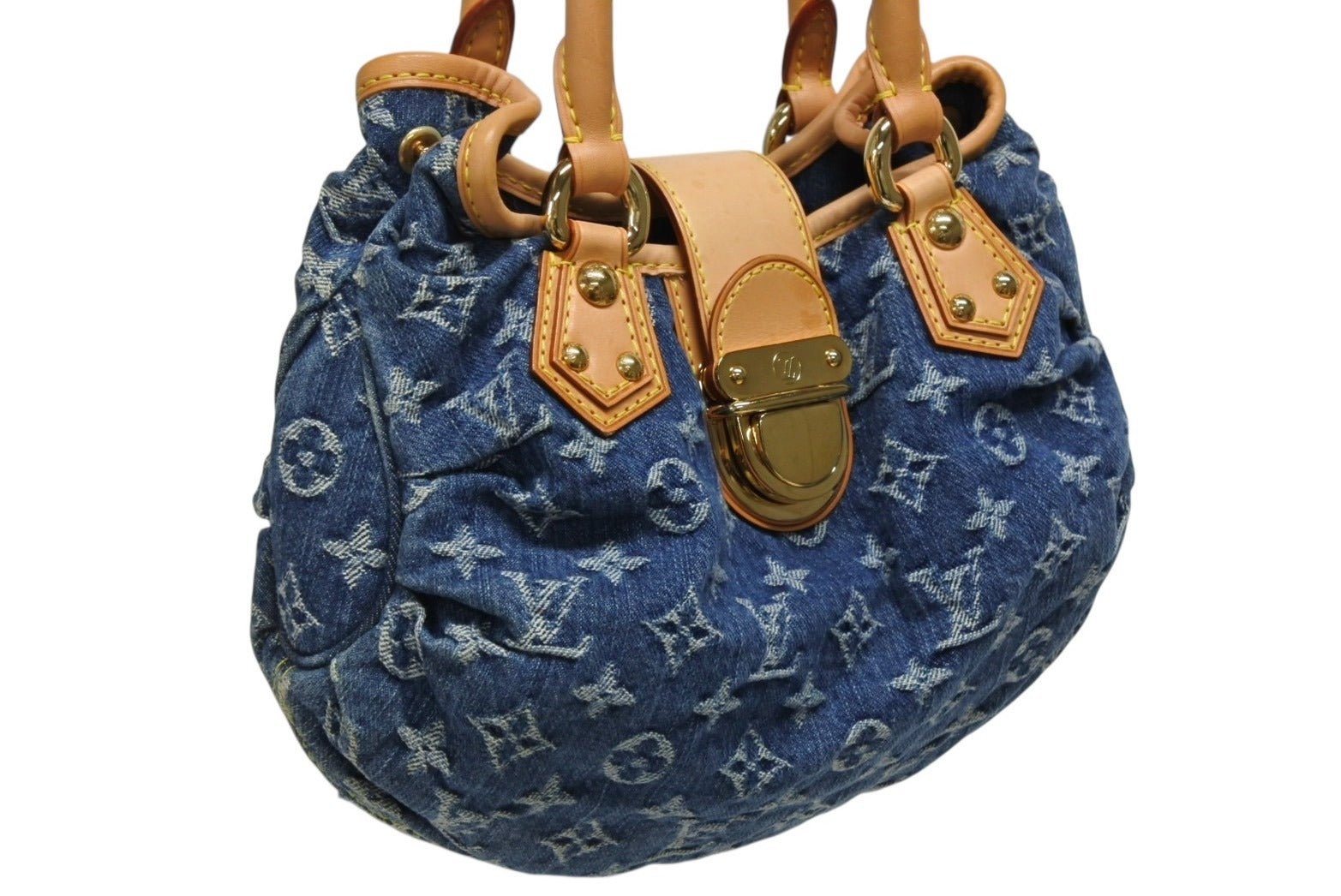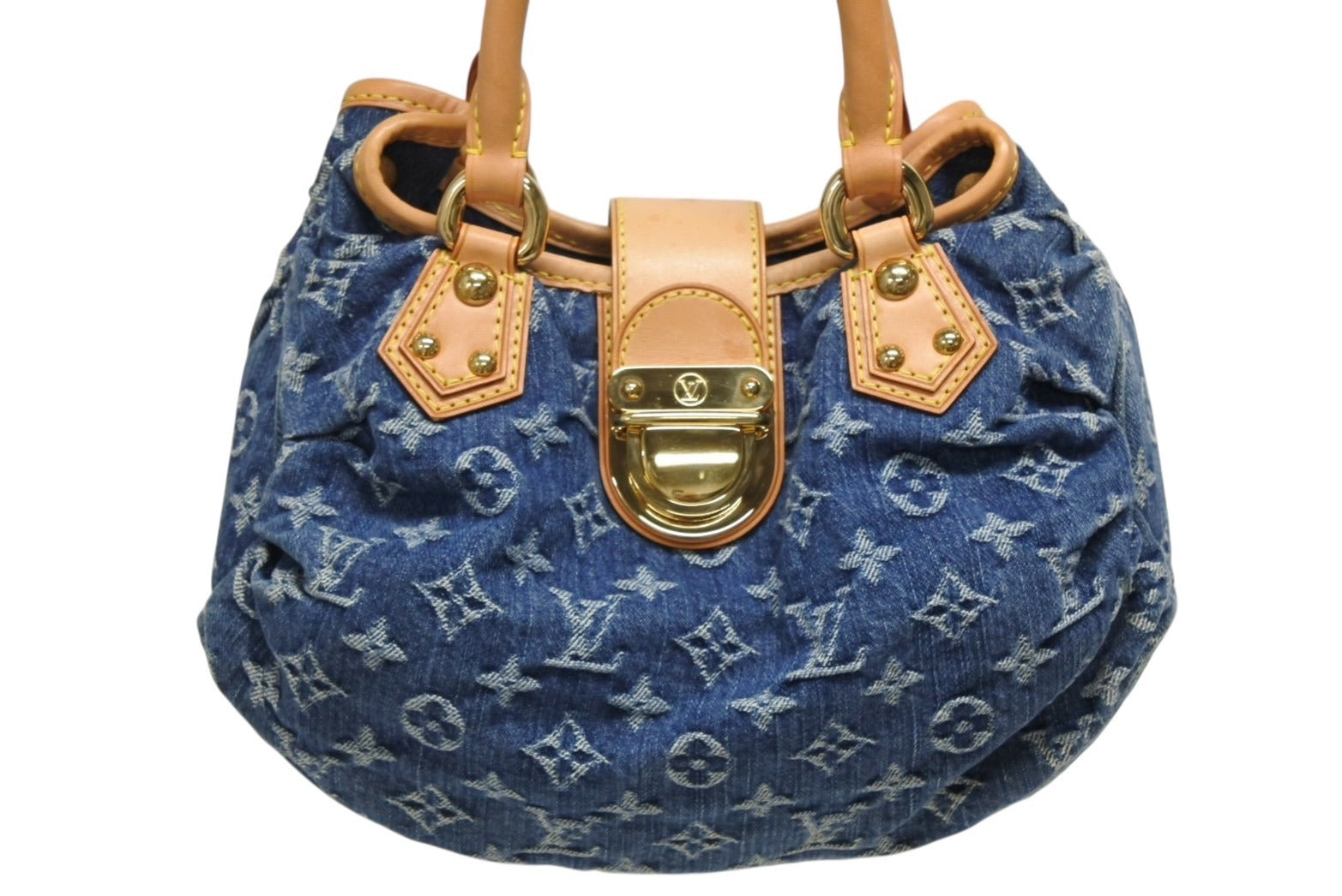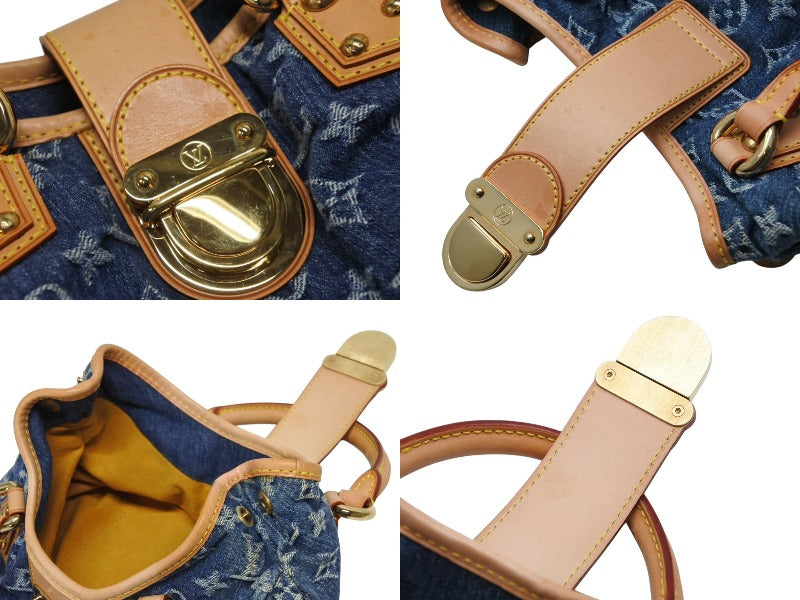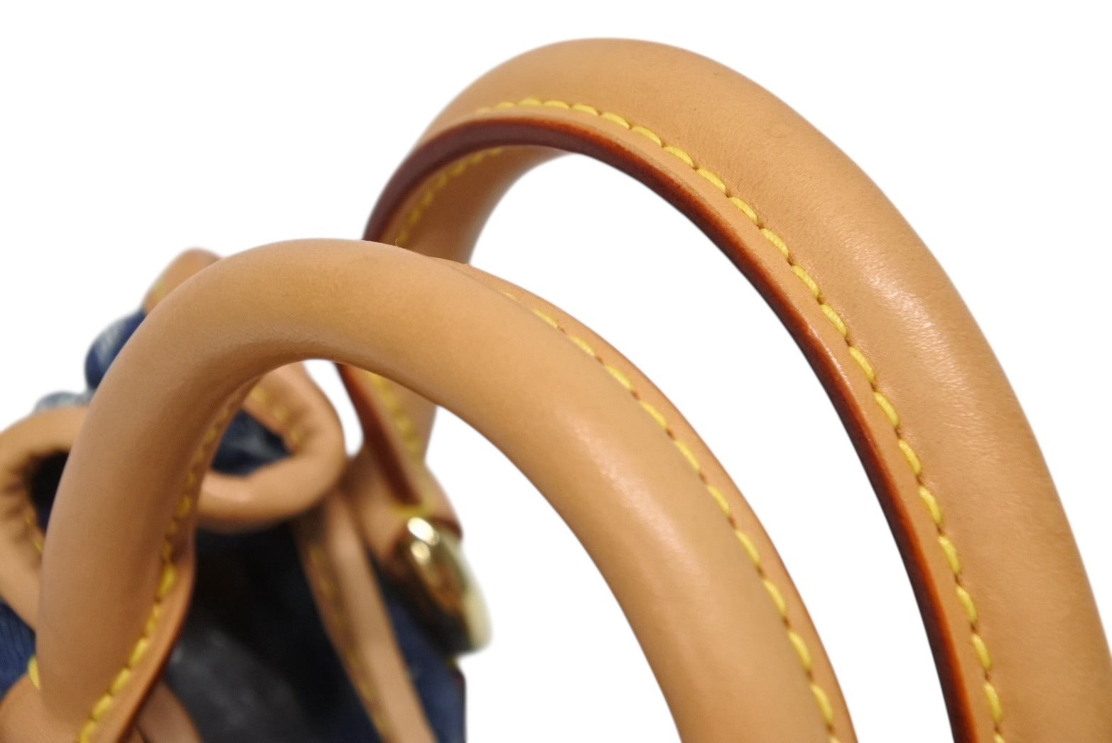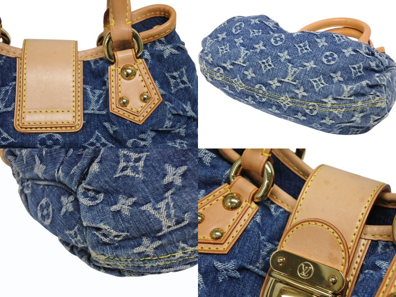 新品同様 LOUIS VUITTON ルイヴィトン モノグラムデニム ミニプリーティ PM ハンドバッグ M95020 レザー ブルー 中古 4b010523
