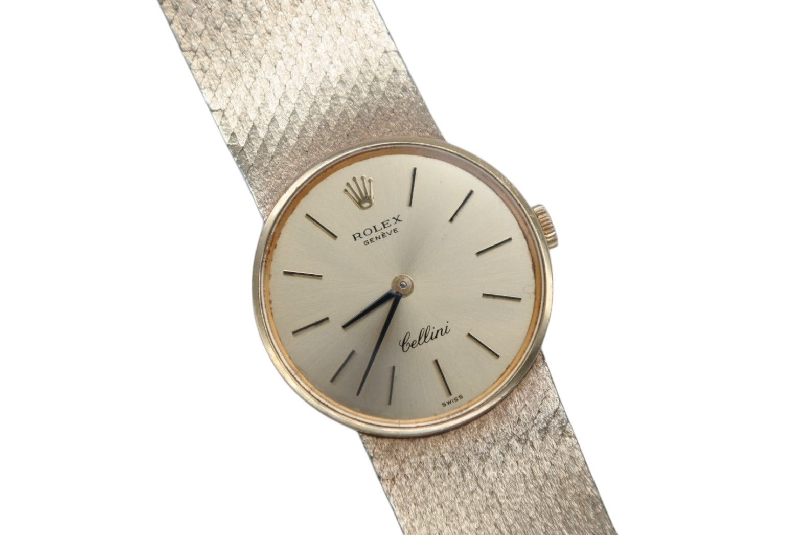 チェリーニはクラシックウォッチの中でも、最もドレスウォッチに特化したもので、ロレックス3大発明に数えられるオイスターケースをあえて採用しないコレクションでもあります。