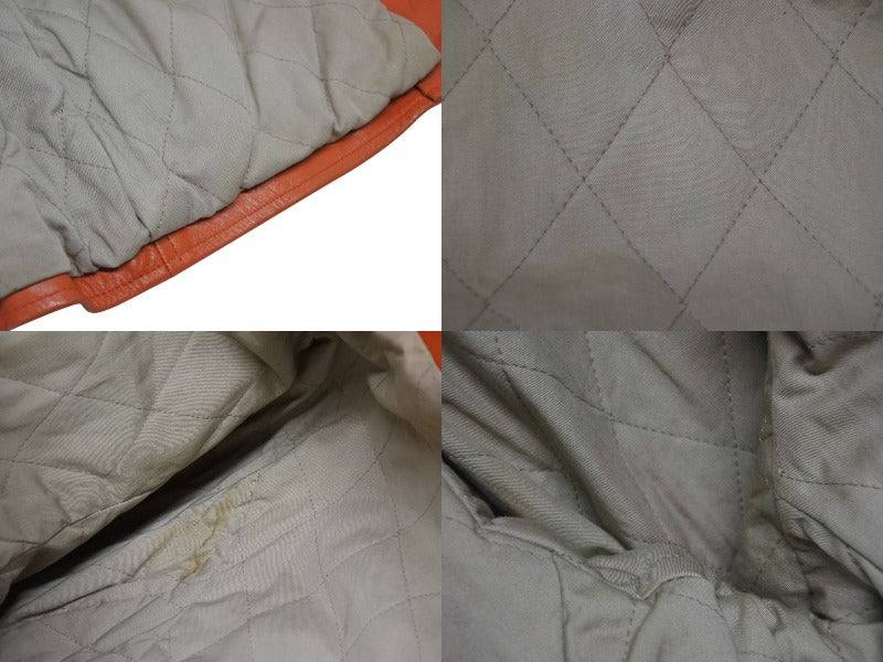 首元、フロント、袖、背面にスレ、汚れ、シワあり。背面プリントに少々スレあり。内側に汚れあり。金具パーツにスレ、小傷、くすみあり。その他使用感の少ない状態です。