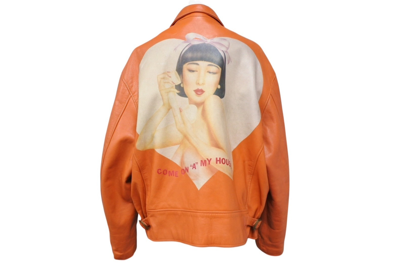 牛革100%のボディにセクシーな女性のグラフィックが施されたレザージャケットです。