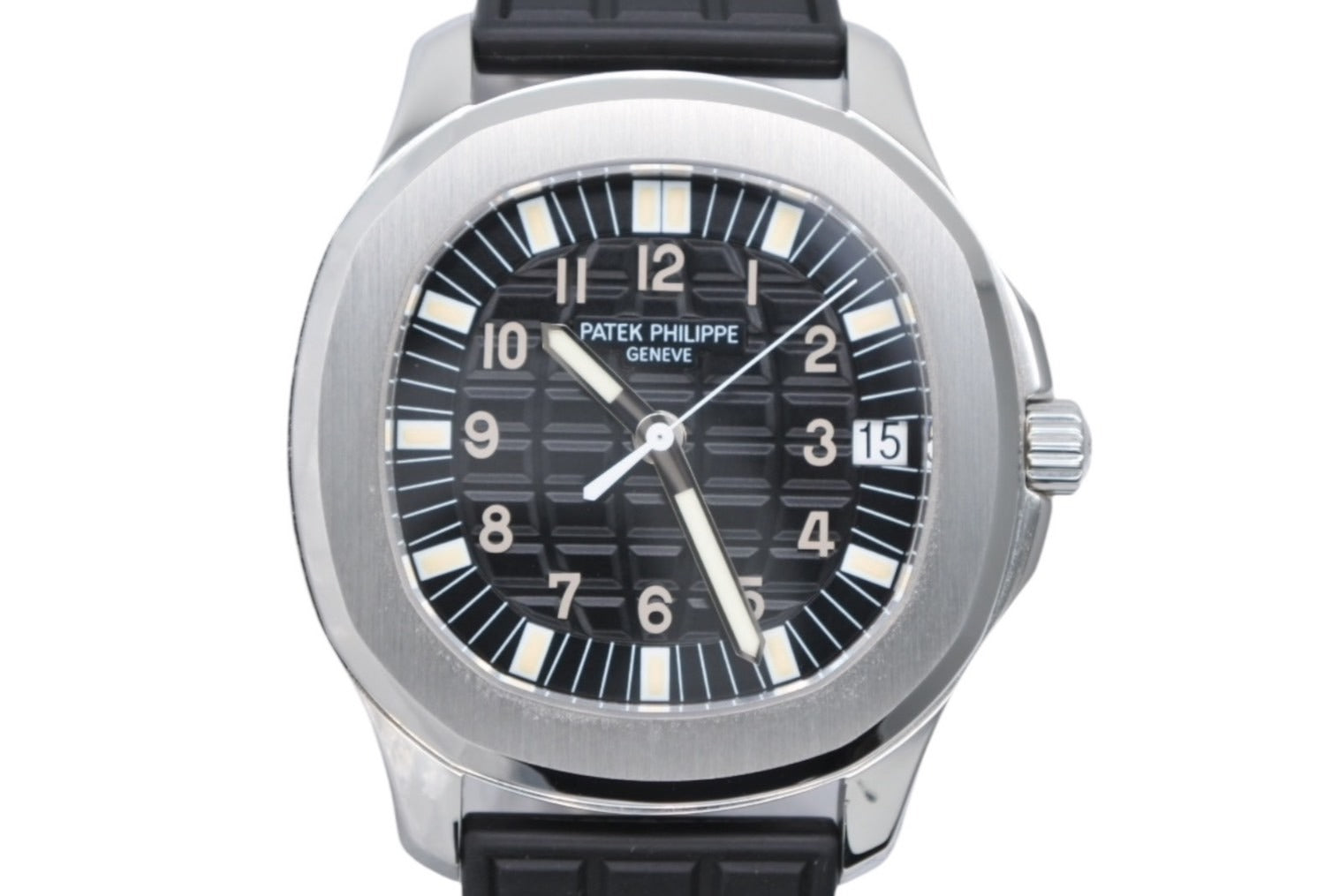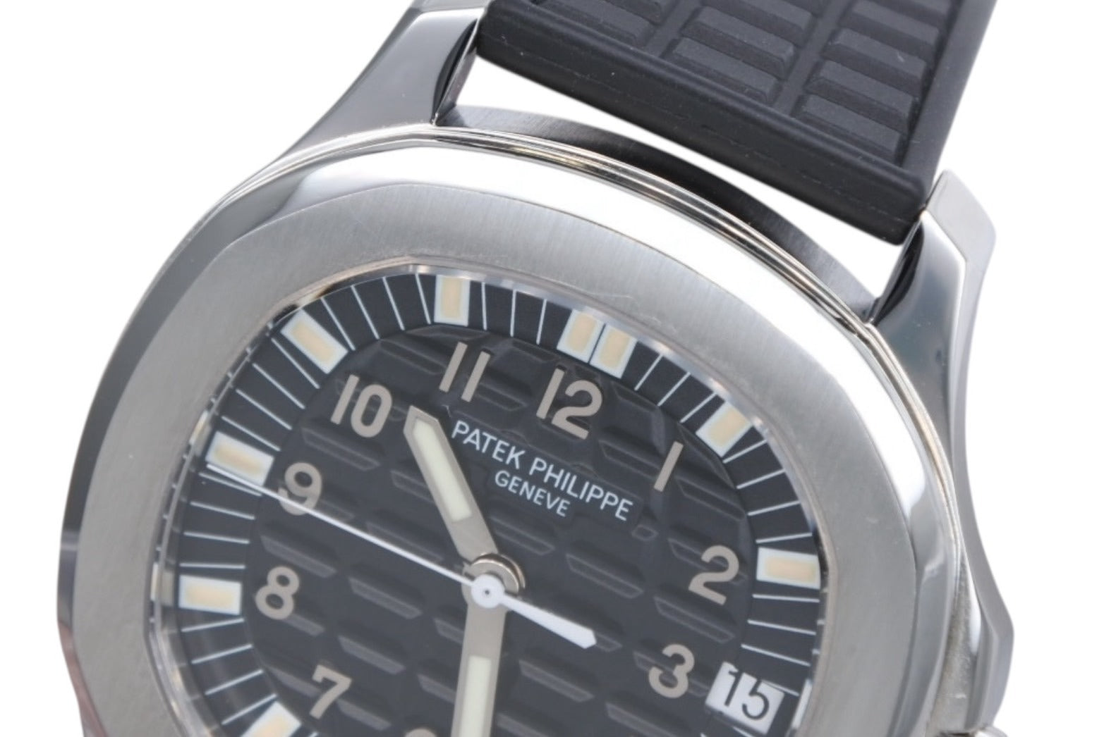 説明アクアノート「Ref.5065A-001」は38mm径のステンレススティール製ケースを採用した生産終了のリファレンスで、オン・オフ問わずさりげなく使えるサイズ感が魅力です。