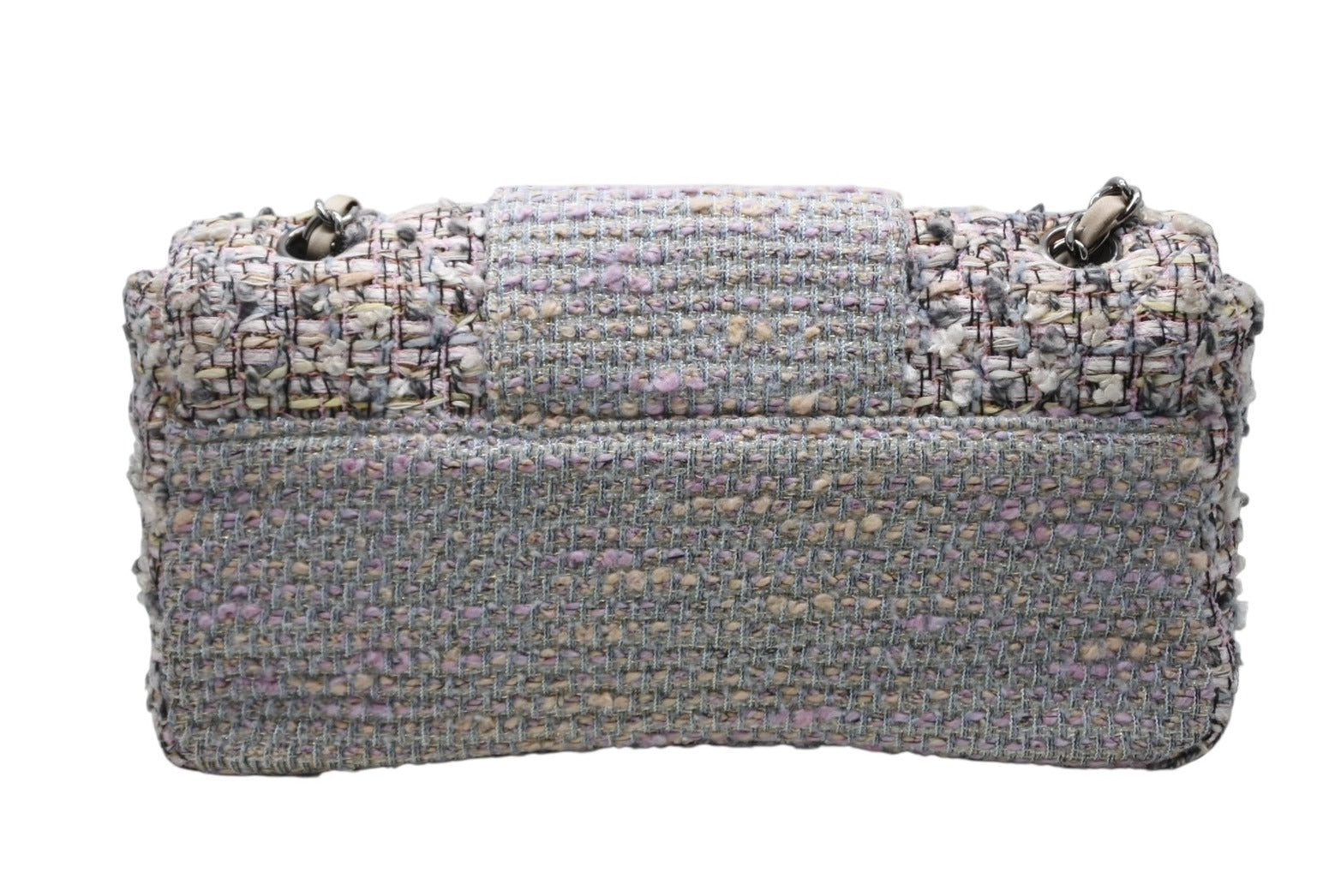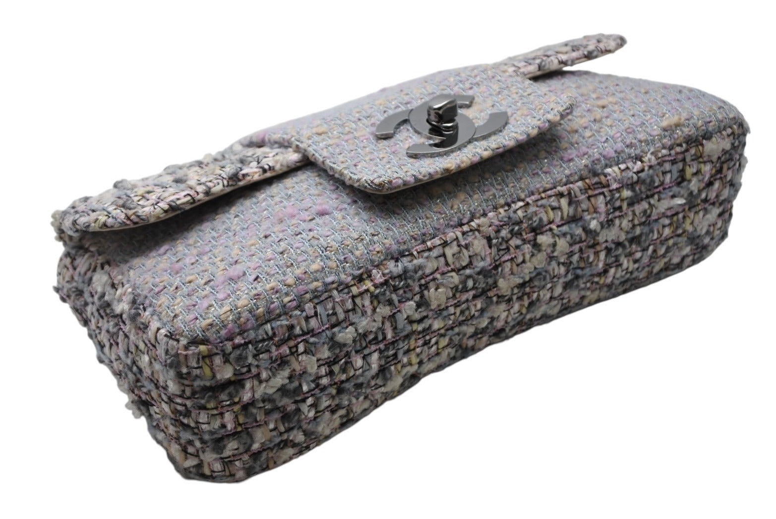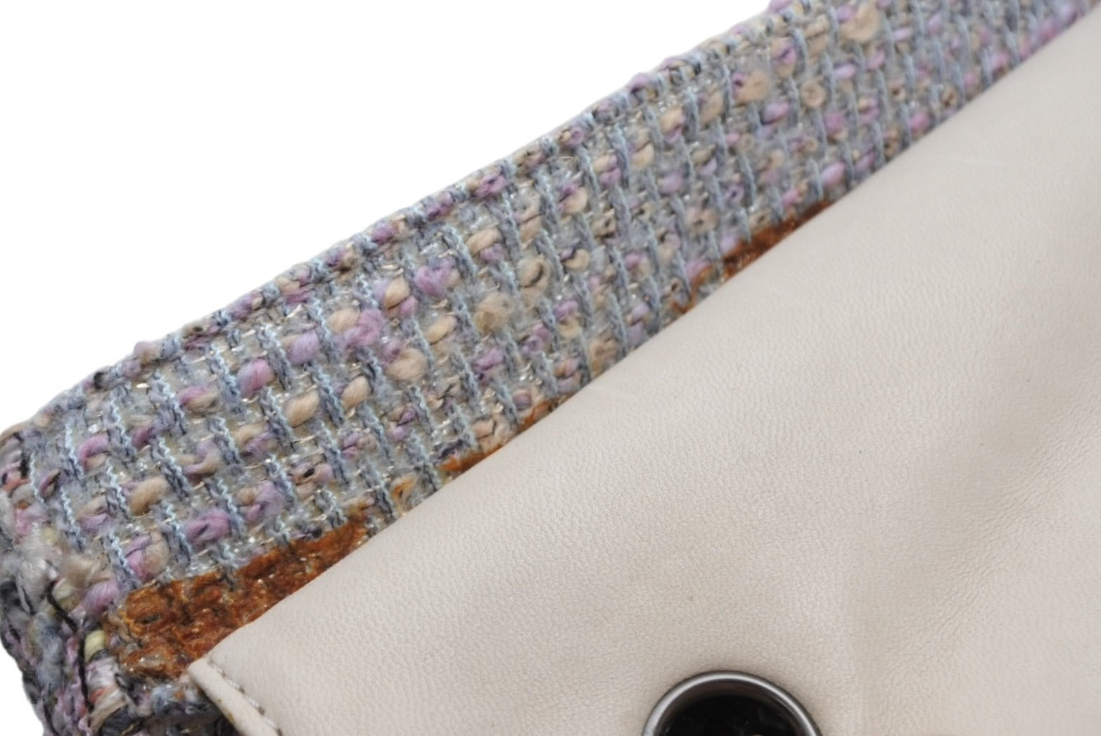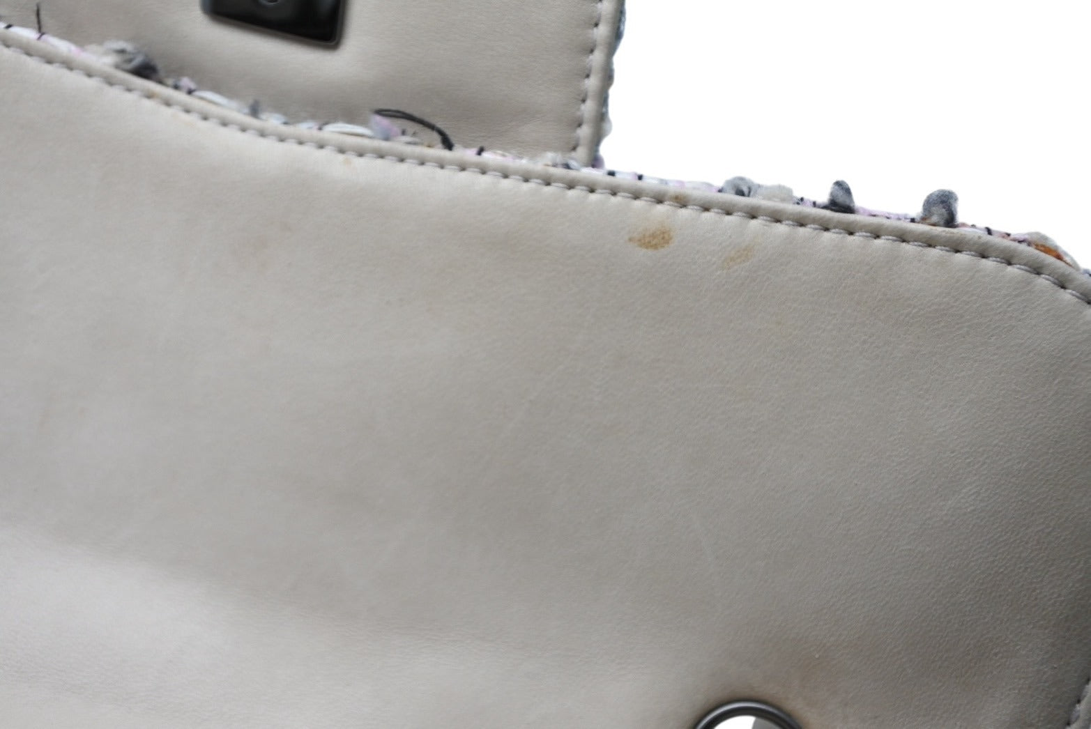 ツイード素材のチェーンショルダーバッグです。可愛らしいカラーリングのツイードやデカココマーク金具など、シャネルの魅力溢れるアイテムです。