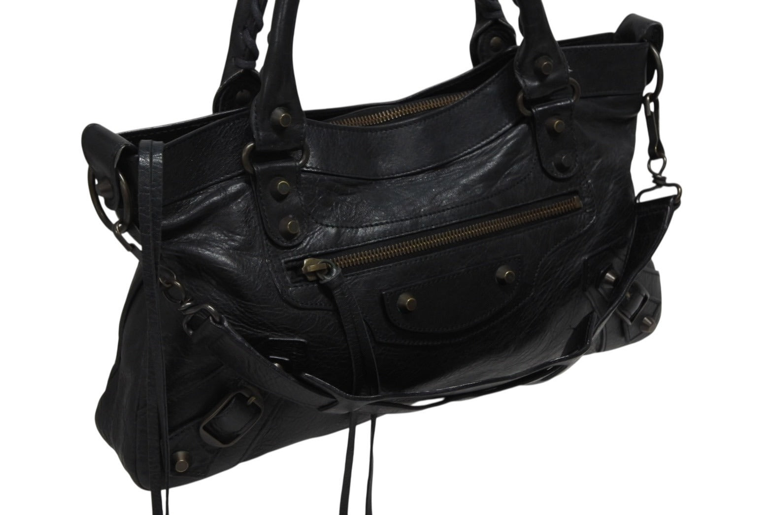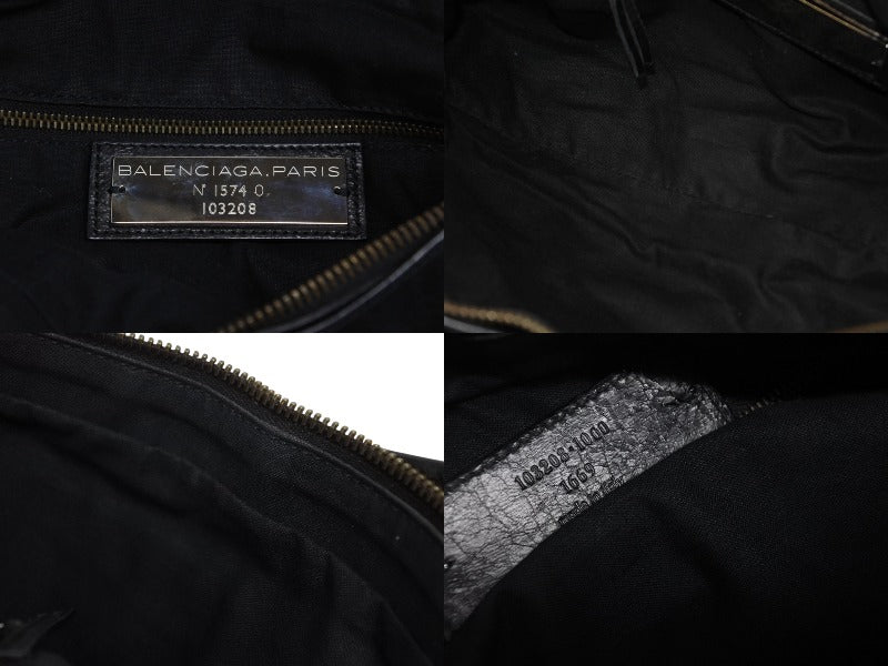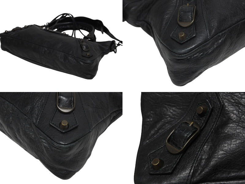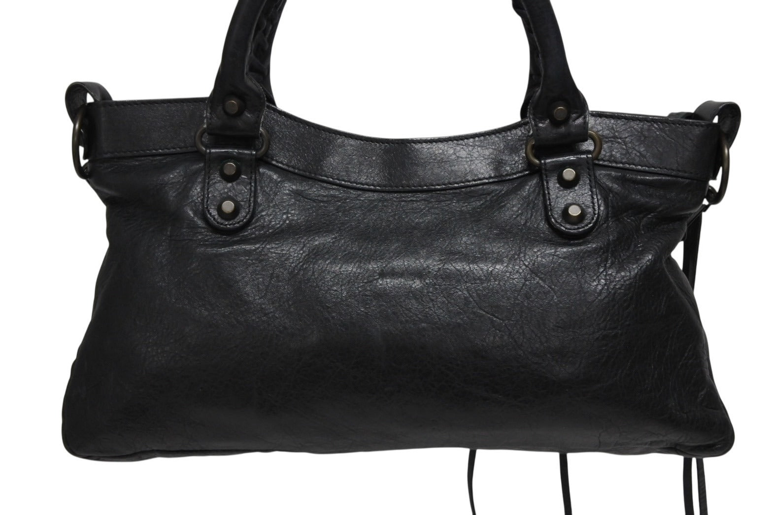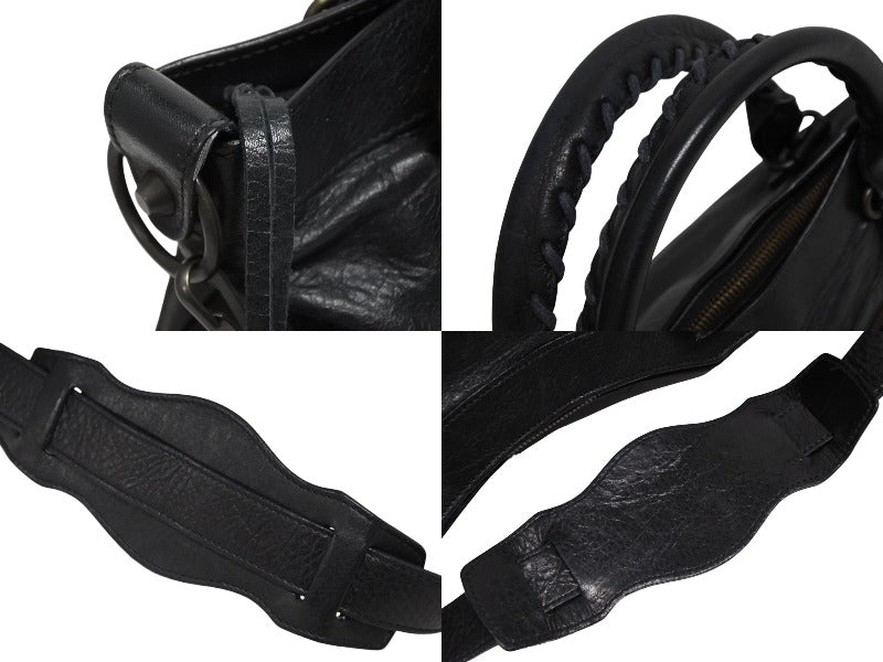 BALENCIAGA バレンシアガ ザ ファースト ハンドバッグ ショルダーバッグ ブラック レザー 103208 アンティークシルバー金具 美品 中古 4b010983