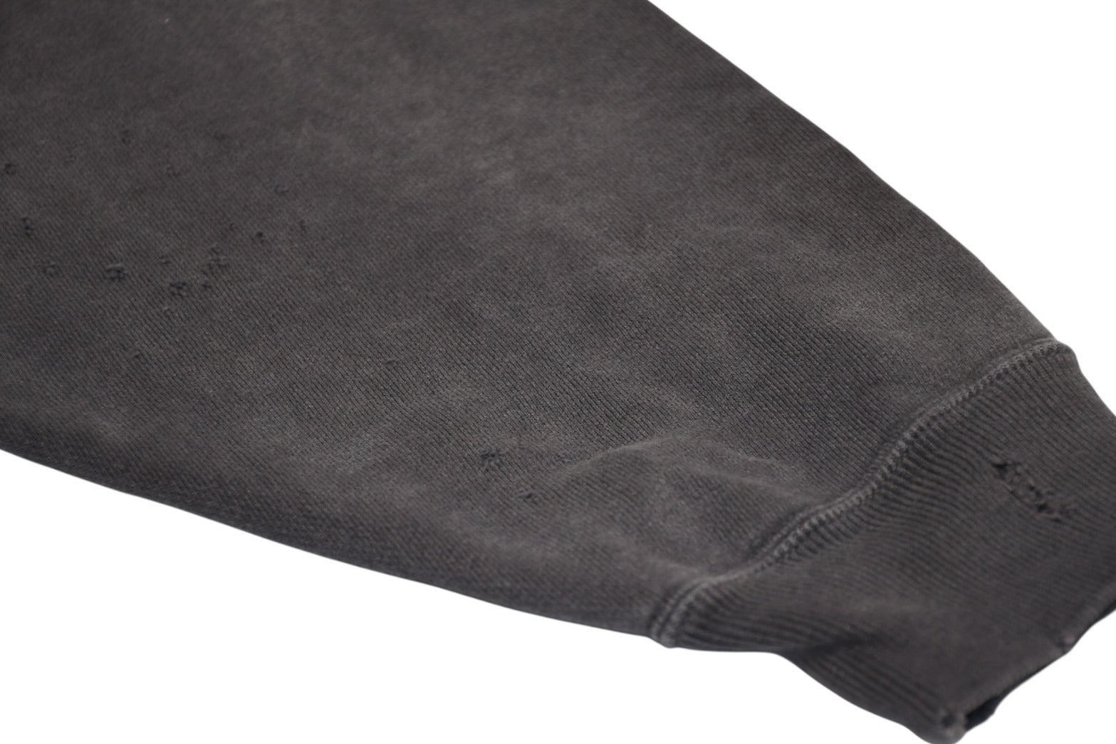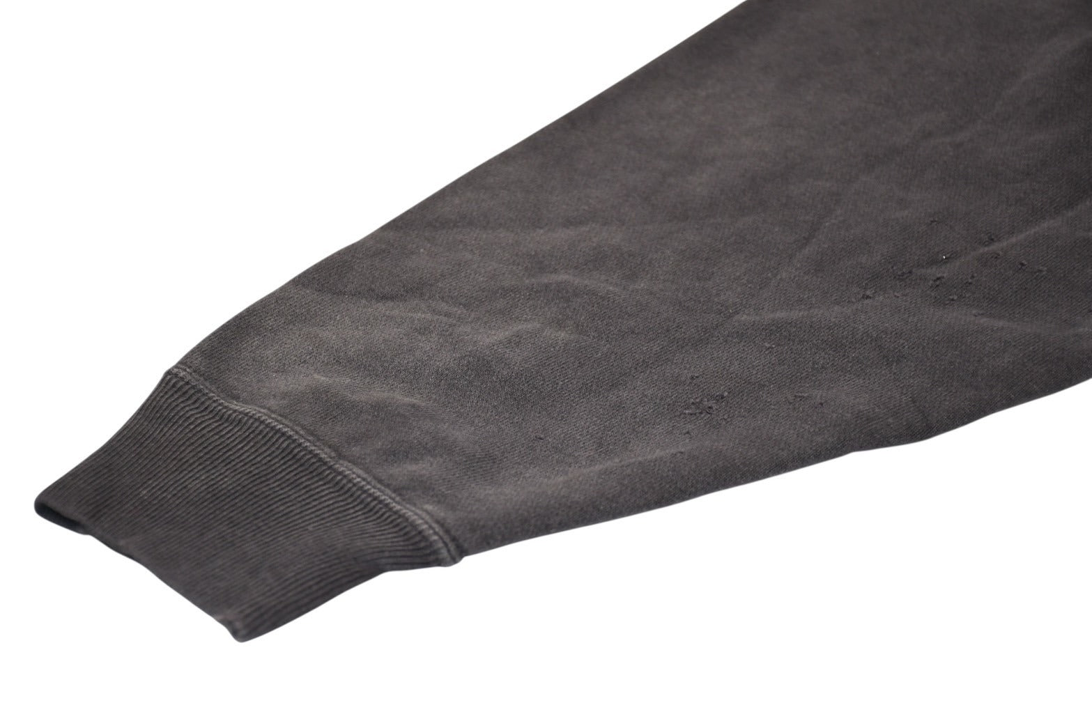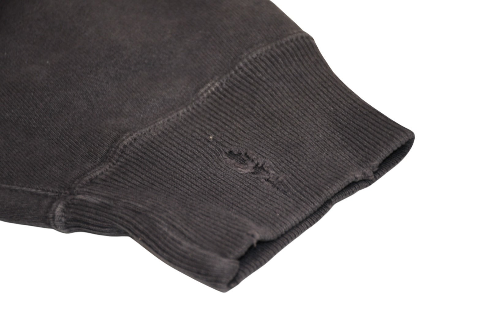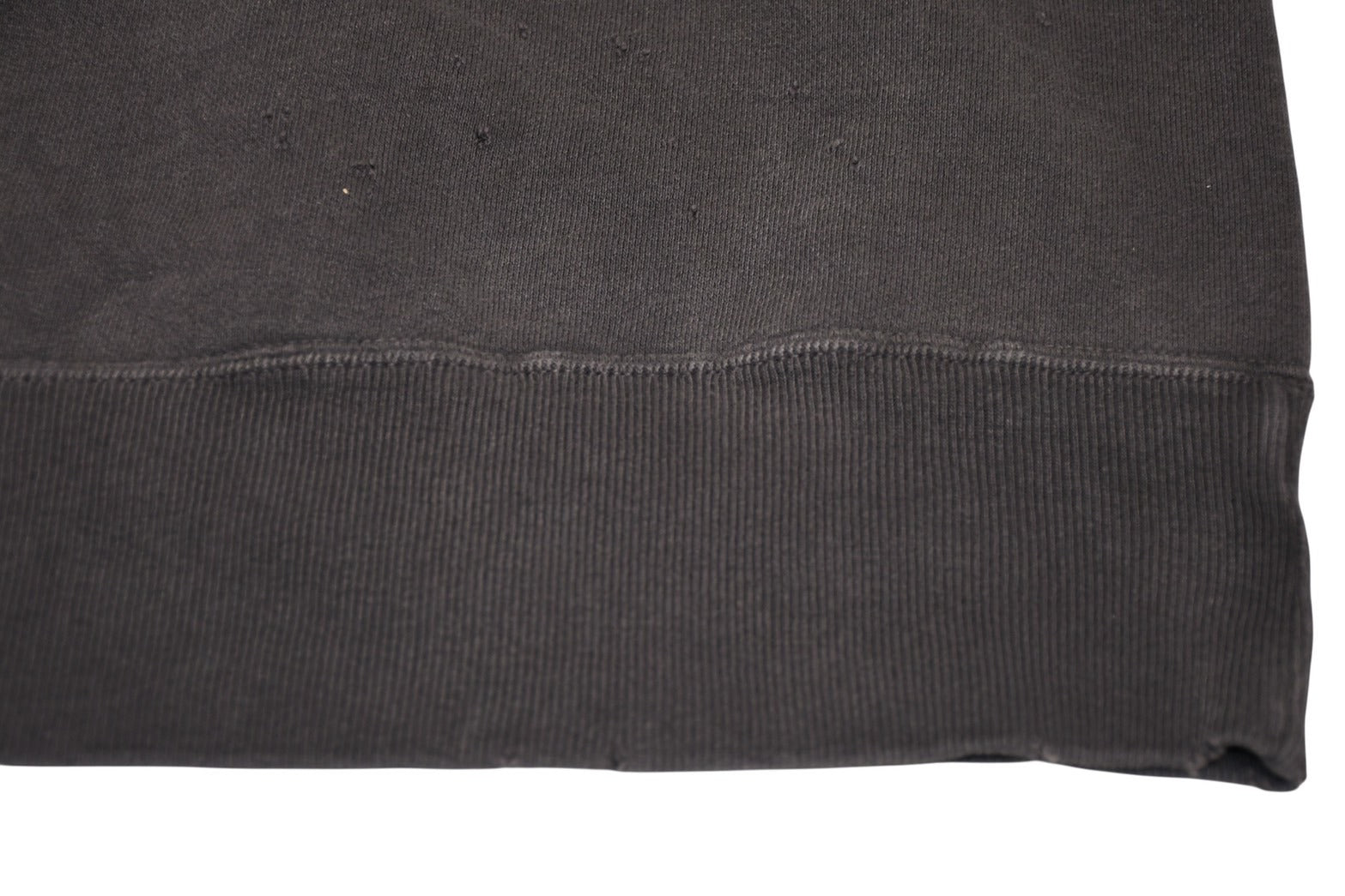 袖リブ内側に少々毛玉あり。全体的に少々毛羽立ちあり。フロント、左袖にシミあり。その他使用感の少ない状態です。