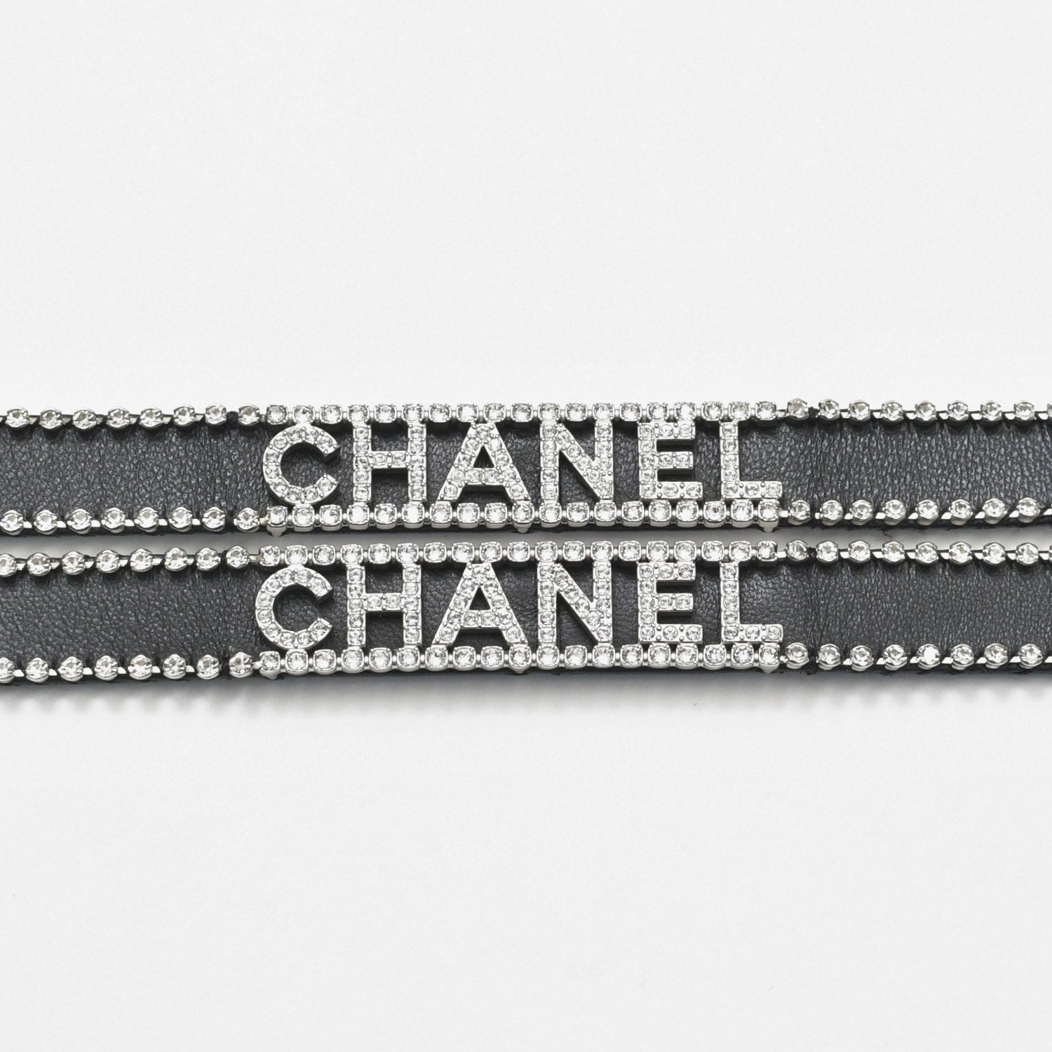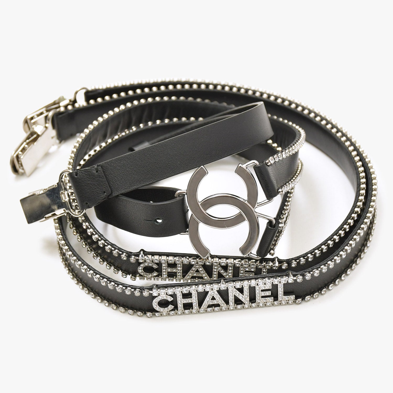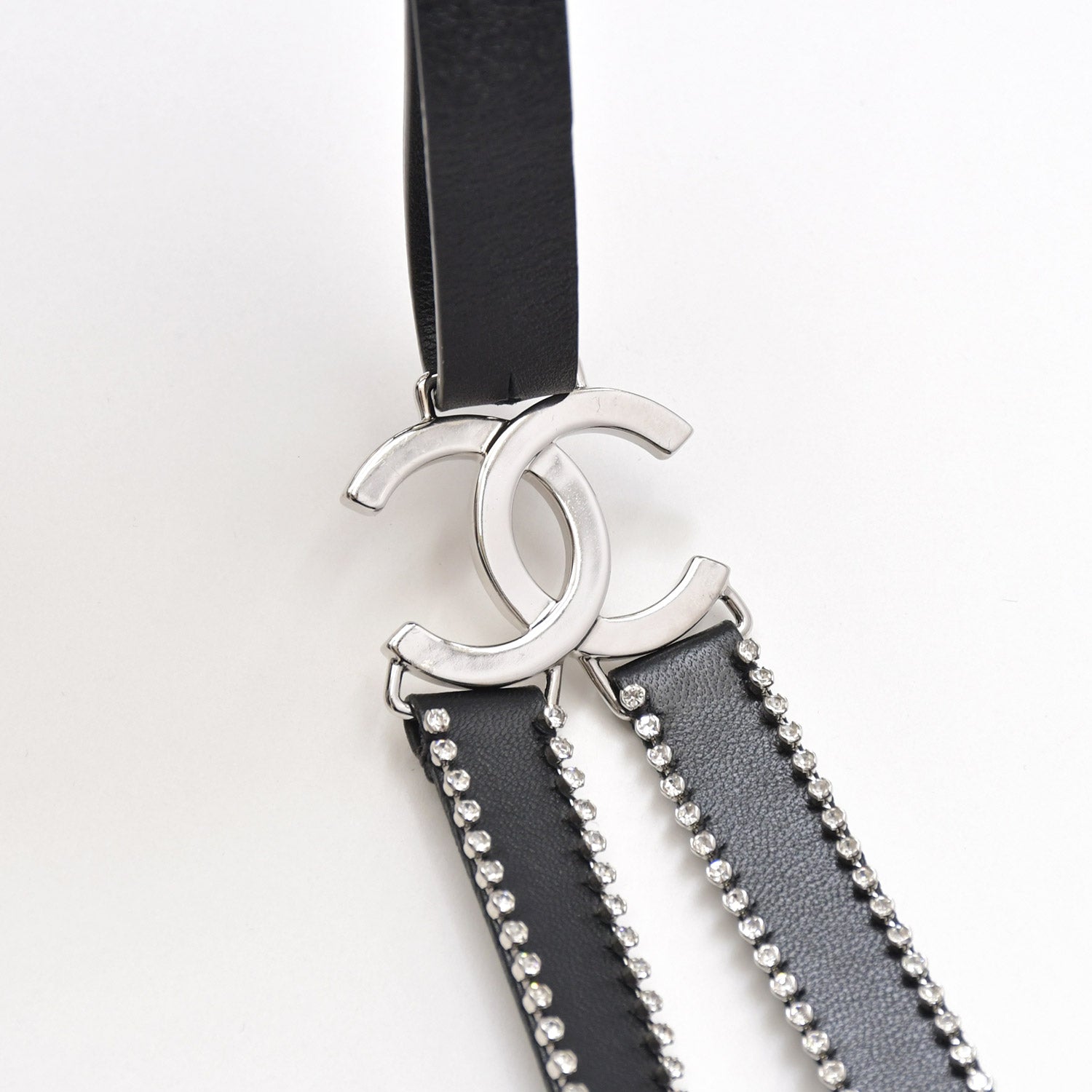 ラインストーンのあしらわれたレザー サスペンダーです。