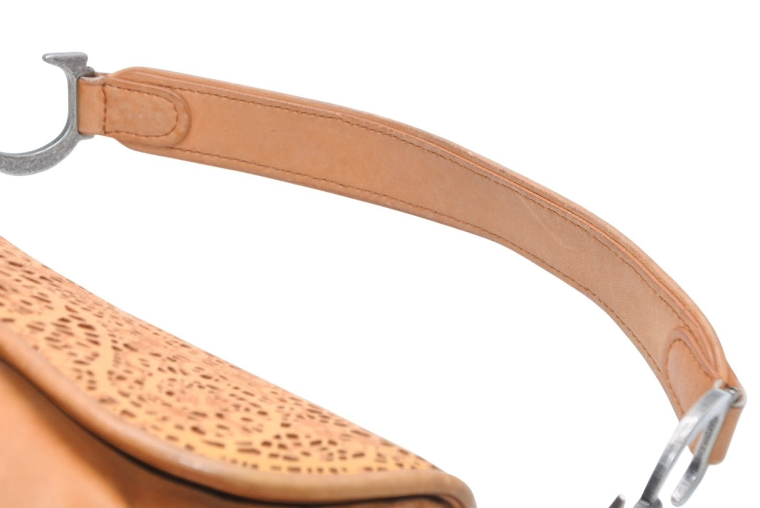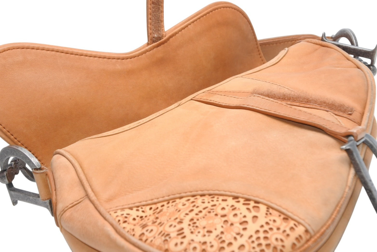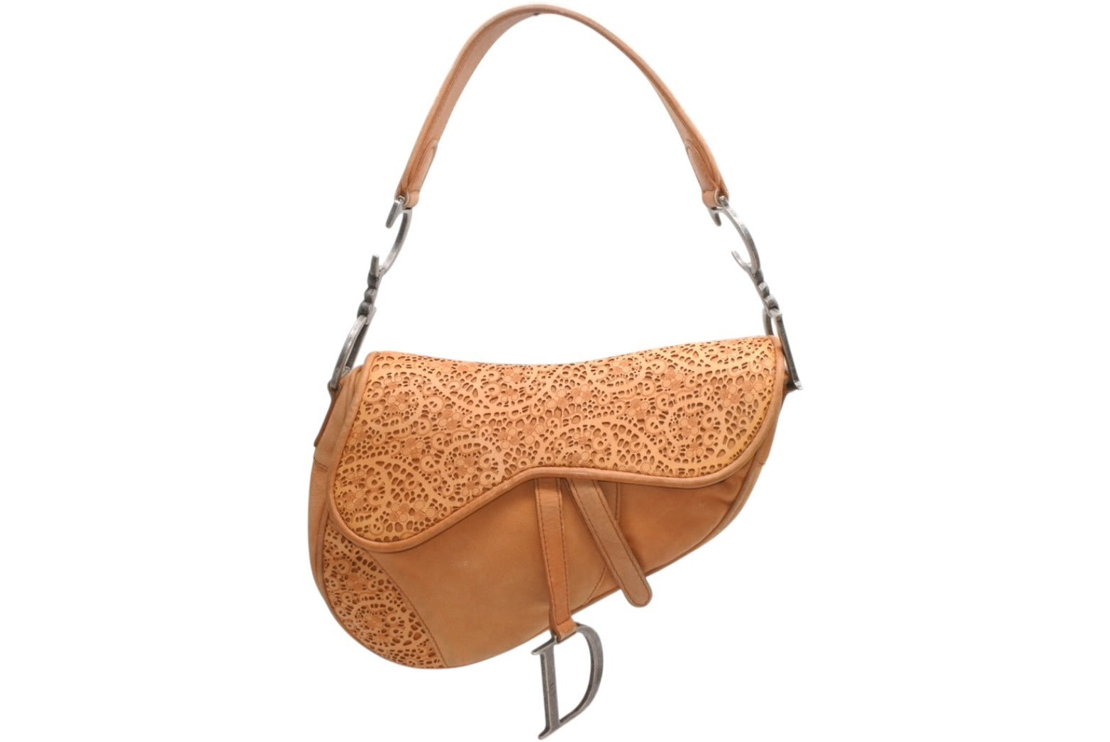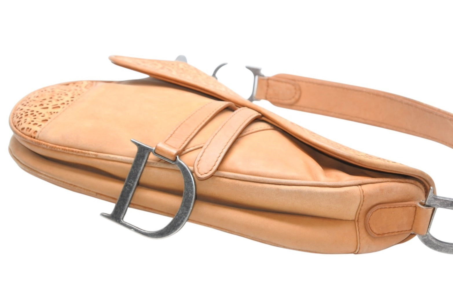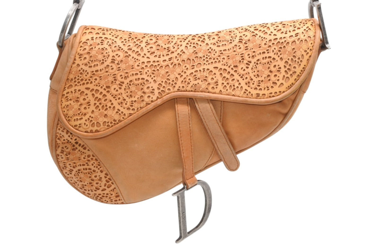 レザーのレースデザインがインパクトのあるサドルバッグです。