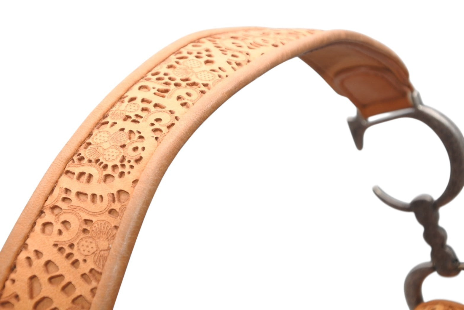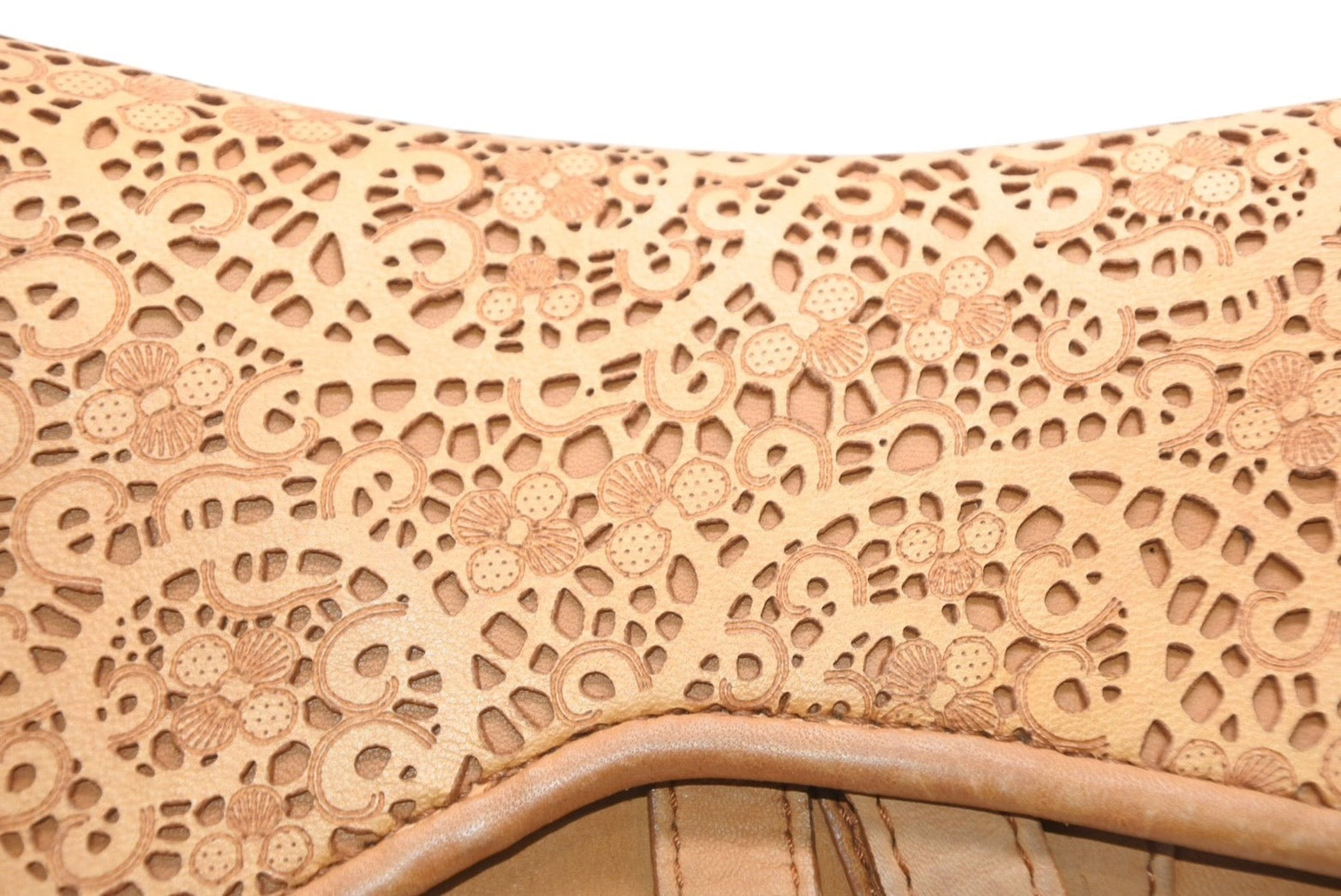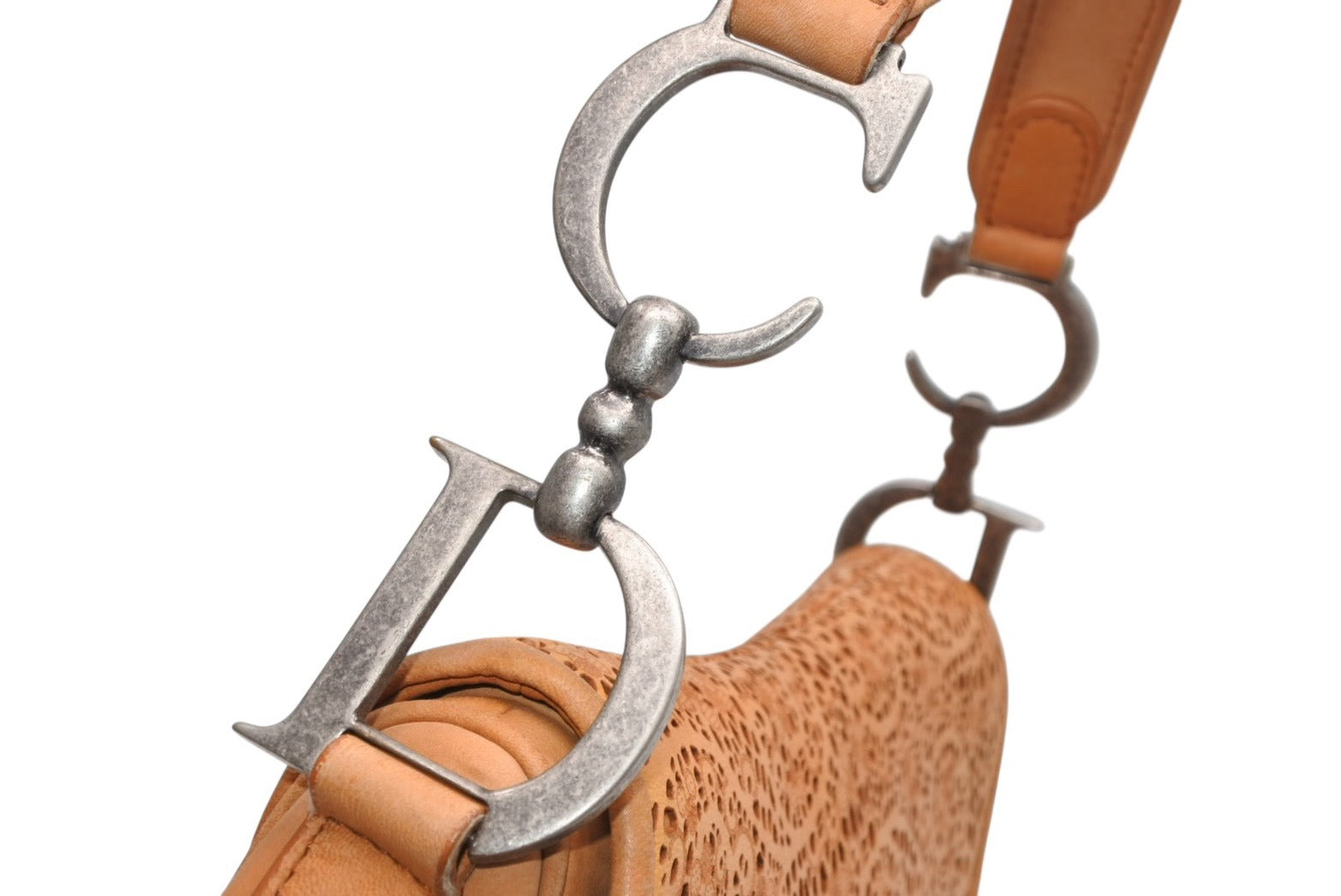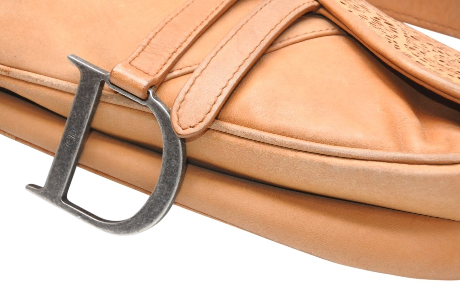 レザーのレースデザインがインパクトのあるサドルバッグです。