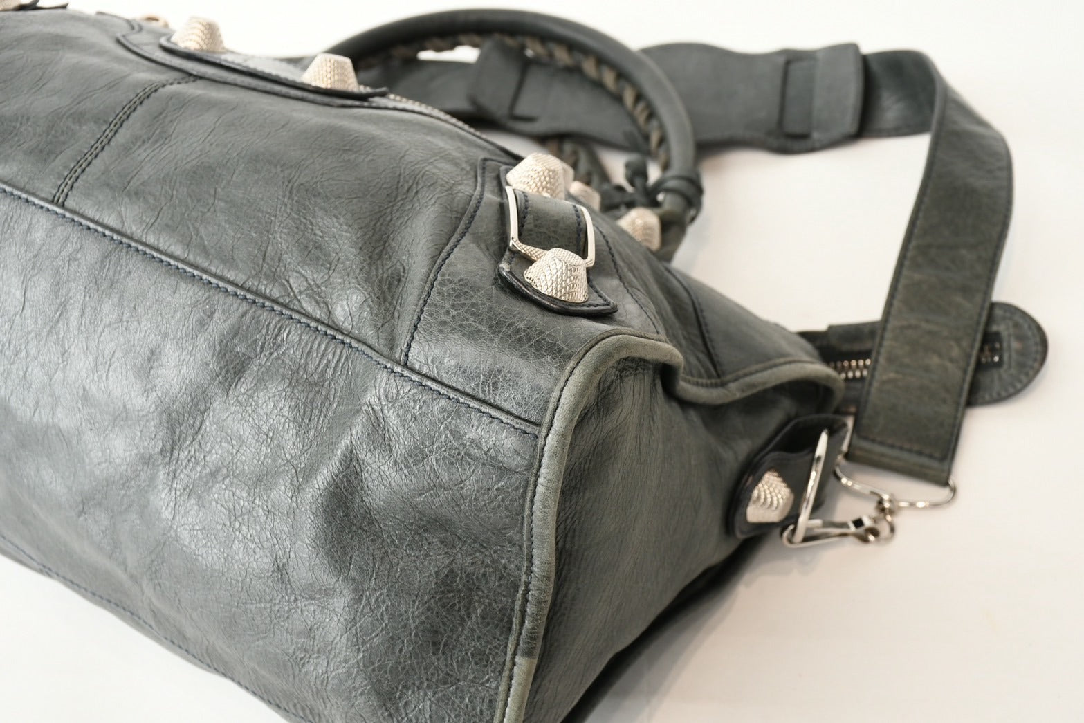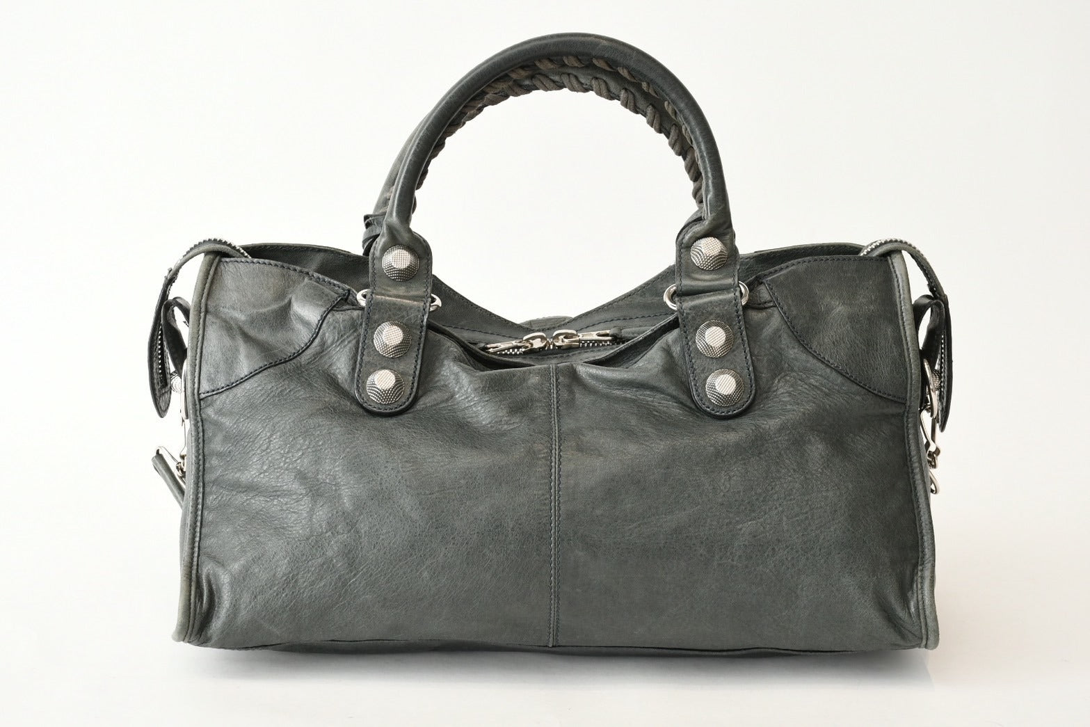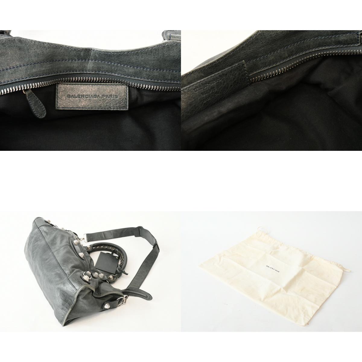 BALENCIAGA バレンシアガ Giant City ジャイアント シティ 2WAYバッグ 173084 カーキ シルバー金具 美品 中古 4b013418