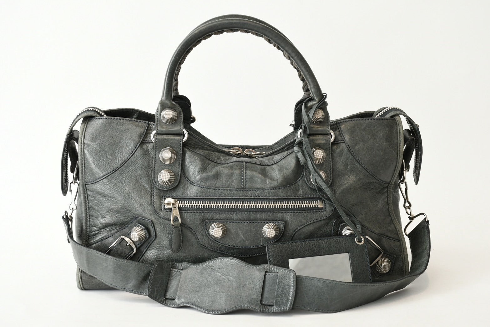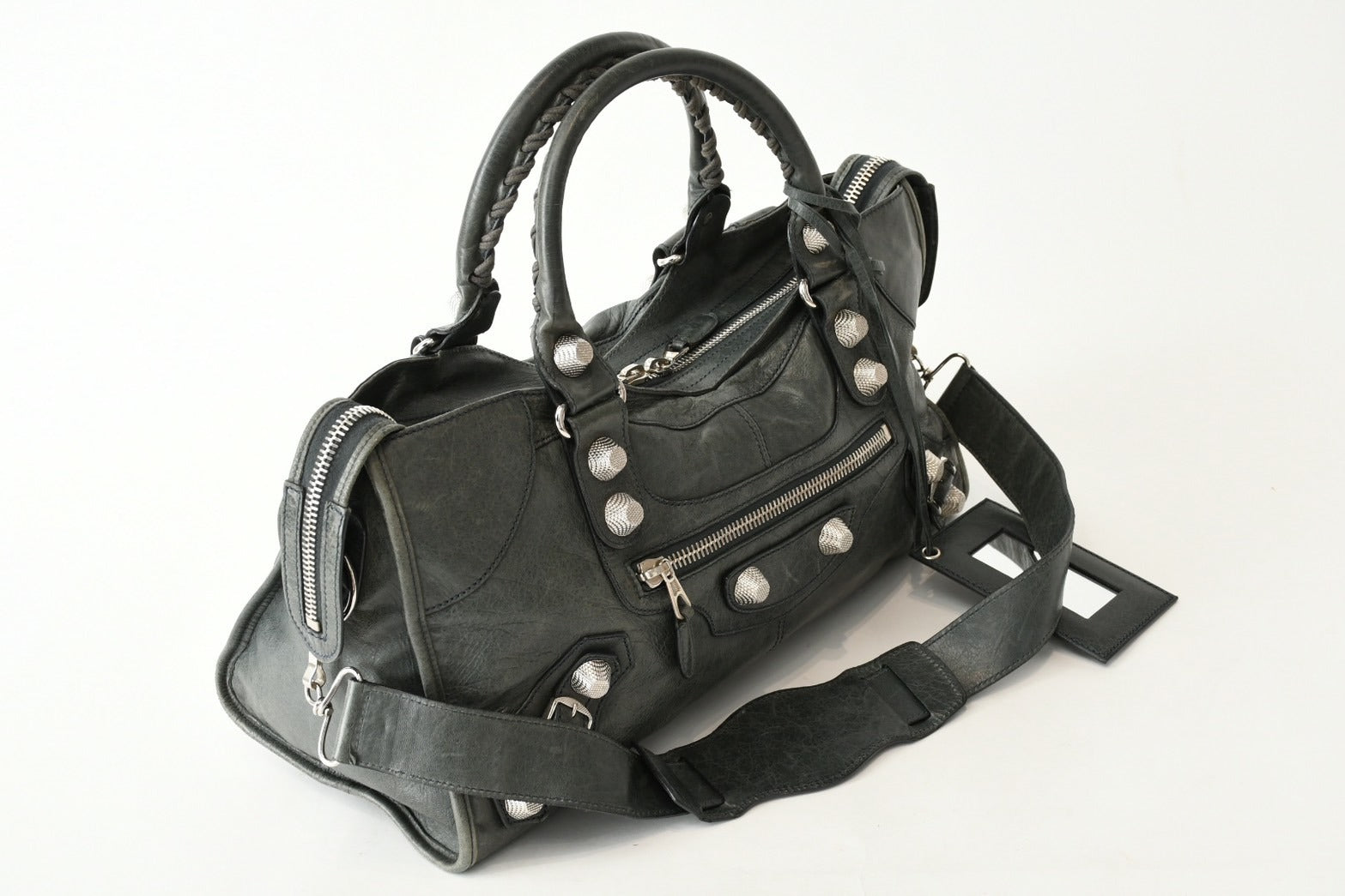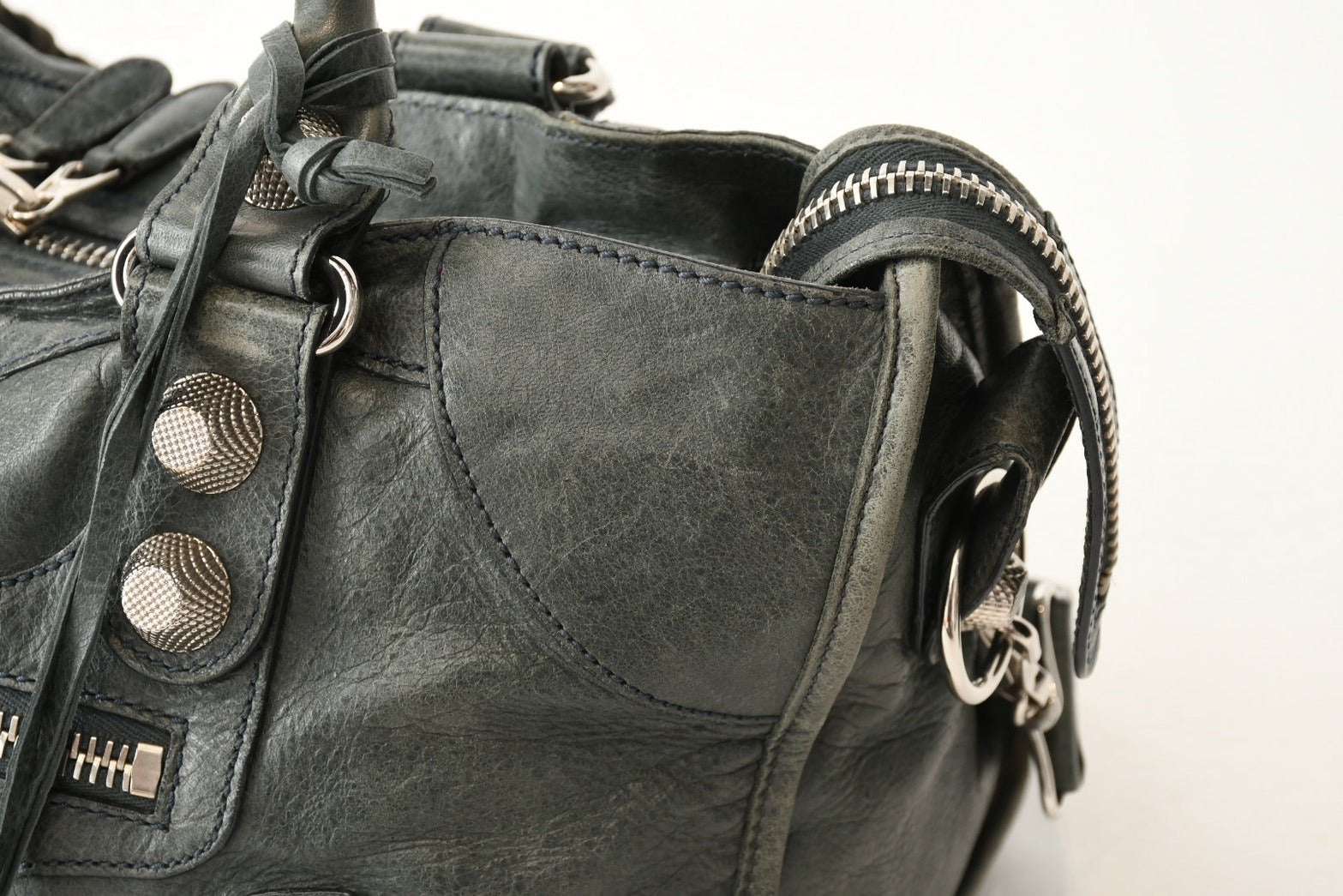 BALENCIAGA バレンシアガ Giant City ジャイアント シティ 2WAYバッグ 173084 カーキ シルバー金具 美品 中古 4b013418